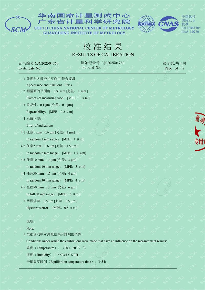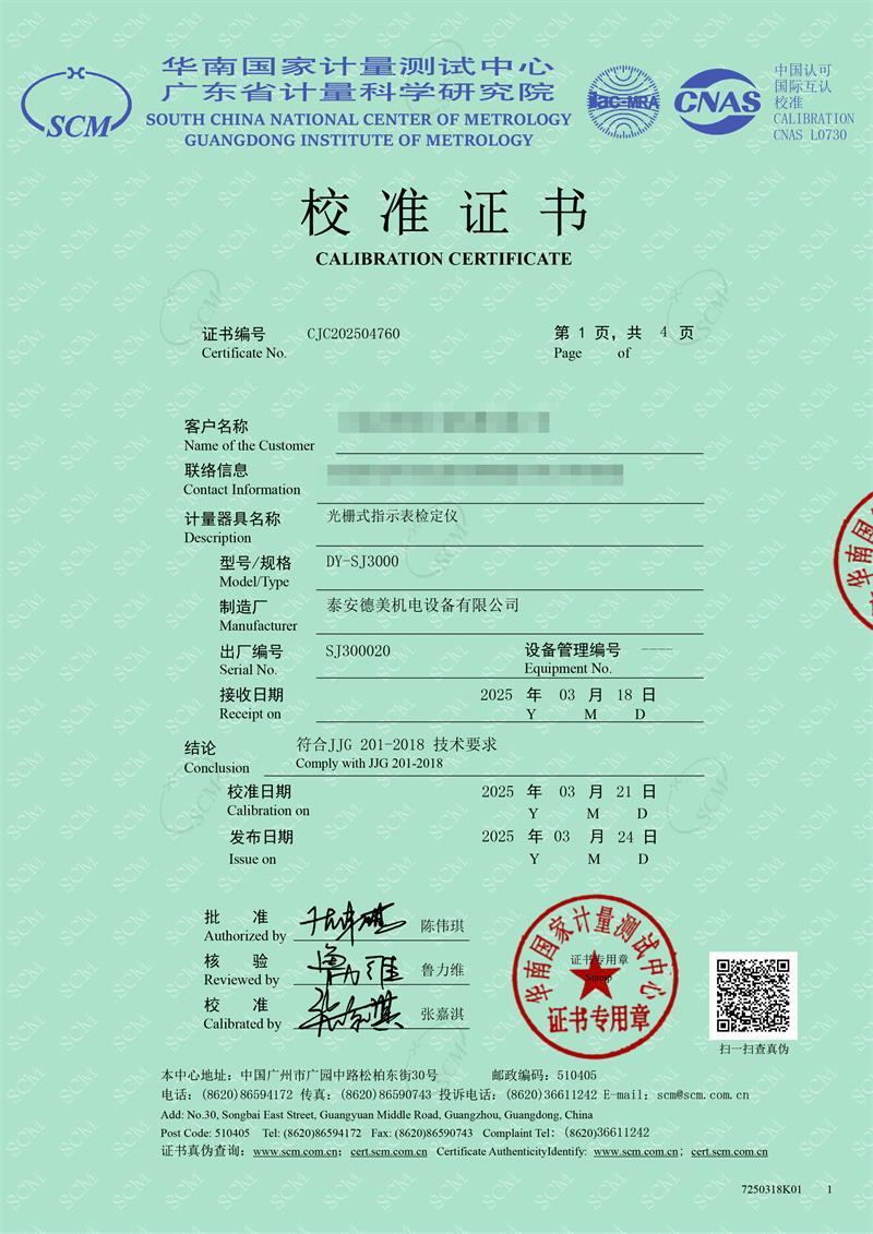 光柵式指示表檢定儀校準證書(shū) 2025-4-3 本文被閱讀 3797 次