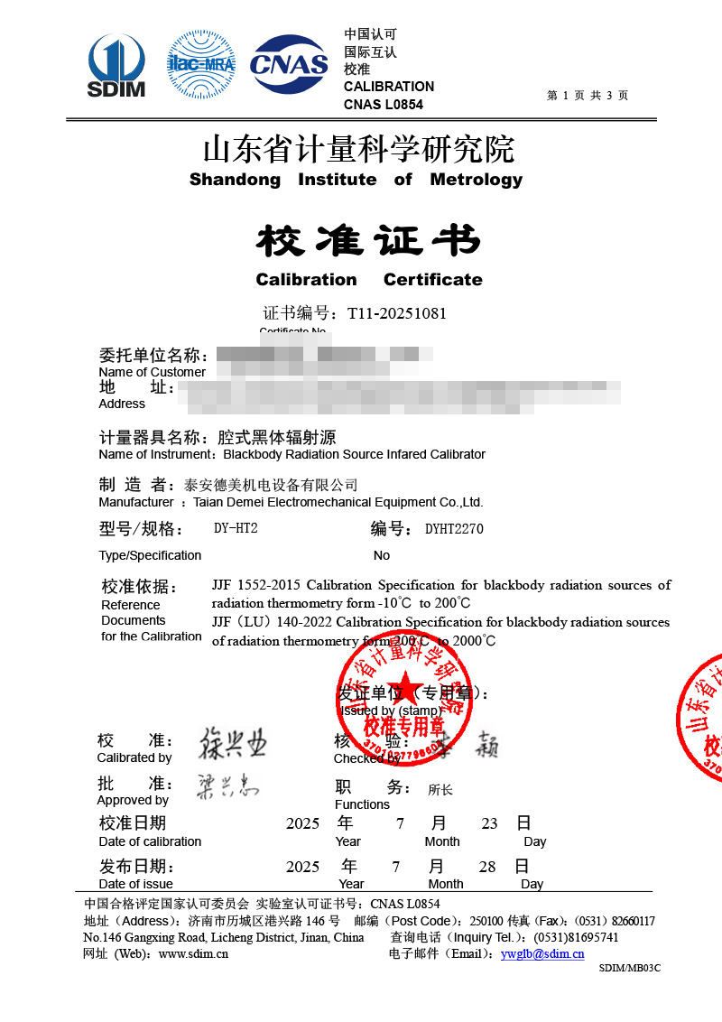 | 上一條:低溫面源黑體爐(0-60℃)校準證書(shū) | 下一條:DY-WSX04M溫度檢定箱(-30℃-50℃) |