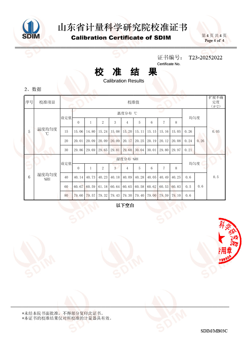 溫濕度檢定箱校準證書(shū)