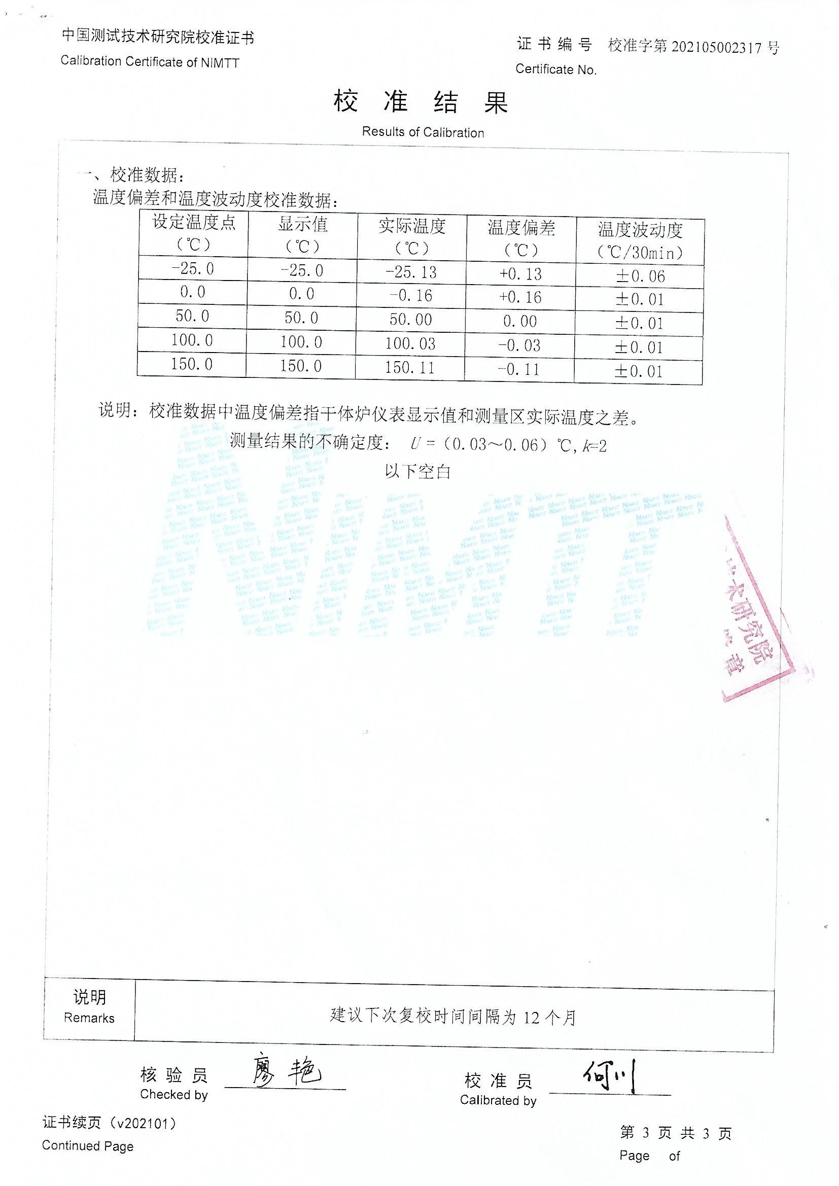 | 上一條:龍旗電子(惠州)有限公司便攜式溫濕度檢定箱 | 下一條:高精度制冷恒溫槽(-80~100℃)校準證書(shū) |