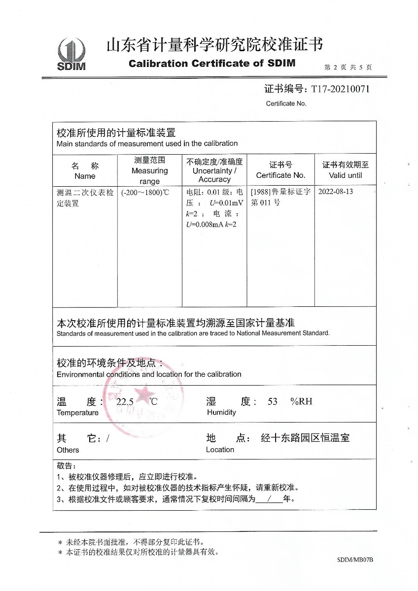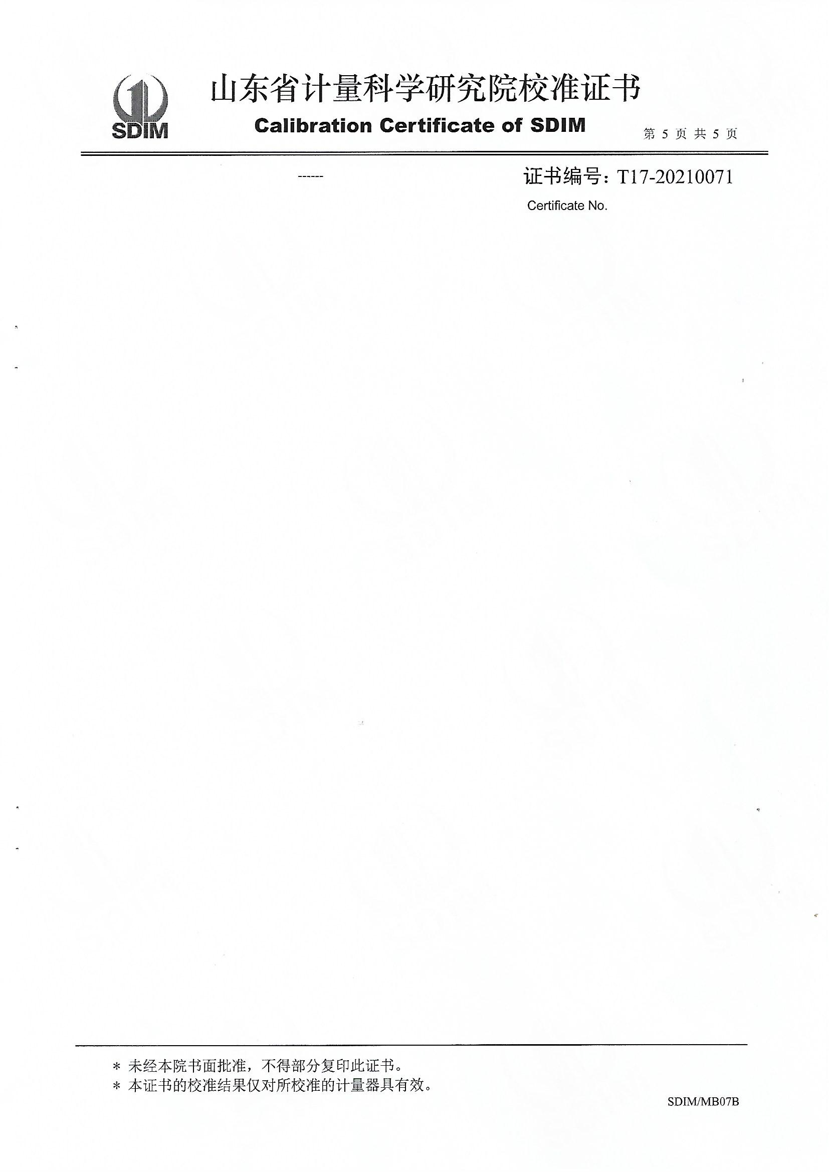 上一條:山東華源工程設備安裝有限公司-智能壓力校驗儀X210461下一條:溫濕度檢定箱校準證書(shū)