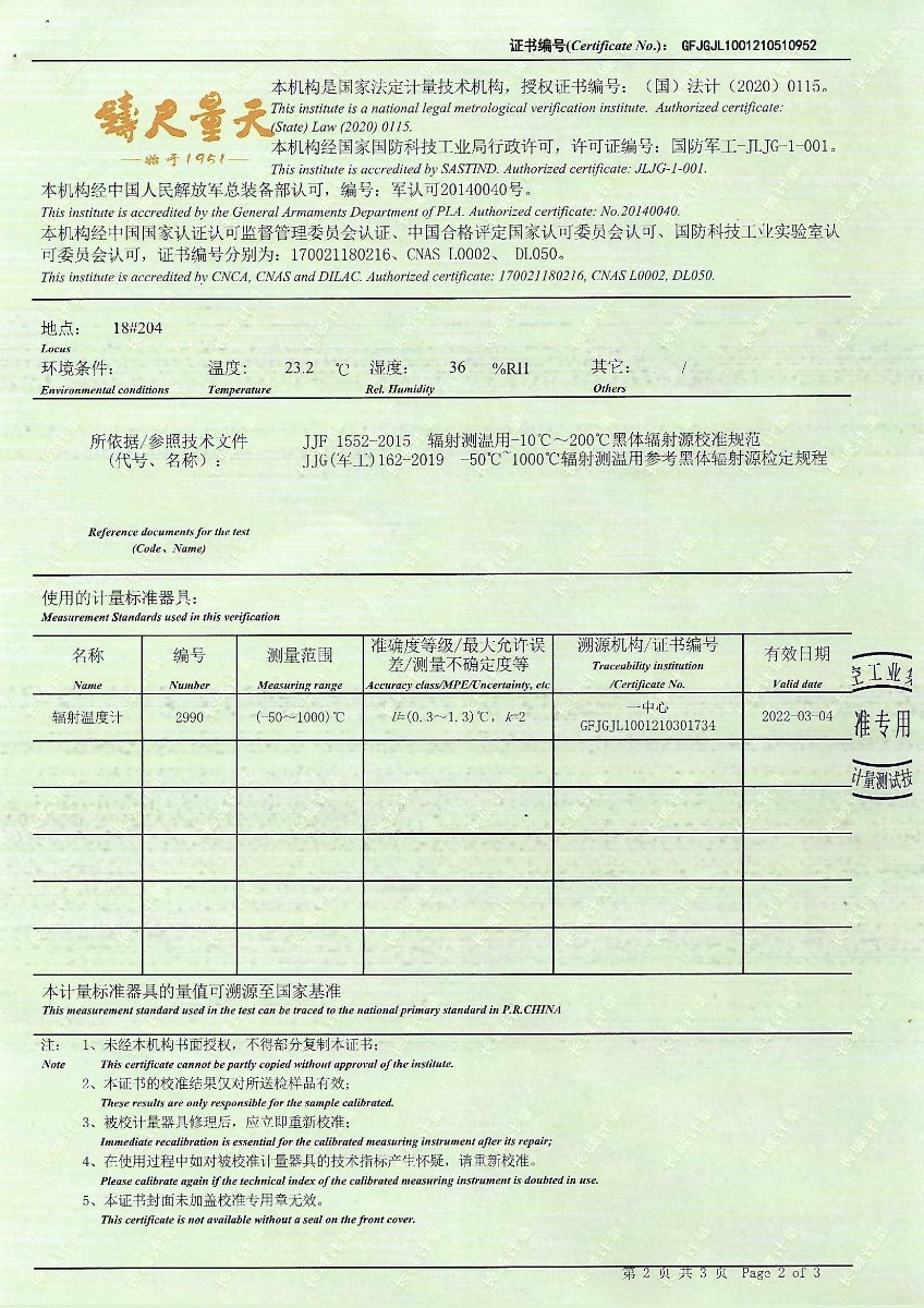 上一條:大秦鐵路股份有限公司侯馬北車(chē)輛段-黑體輻射源下一條:溫濕度檢定箱校準證書(shū)