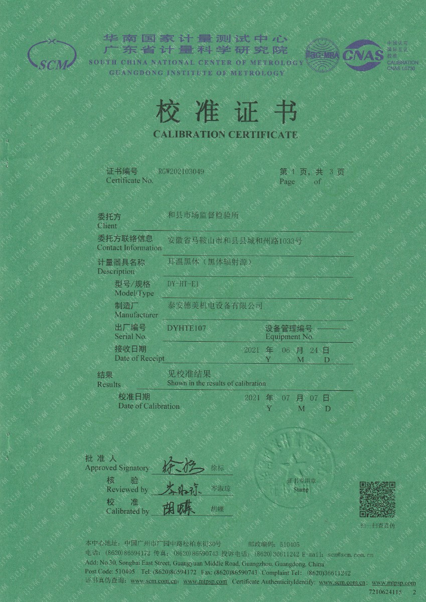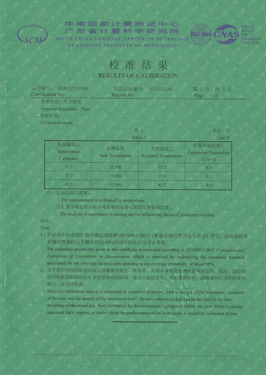 | 上一條:廣東省連平縣質(zhì)量技術(shù)監督檢測所數字式溫度計 | 下一條:智能干體儀(六位半精度)校準證書(shū) |
