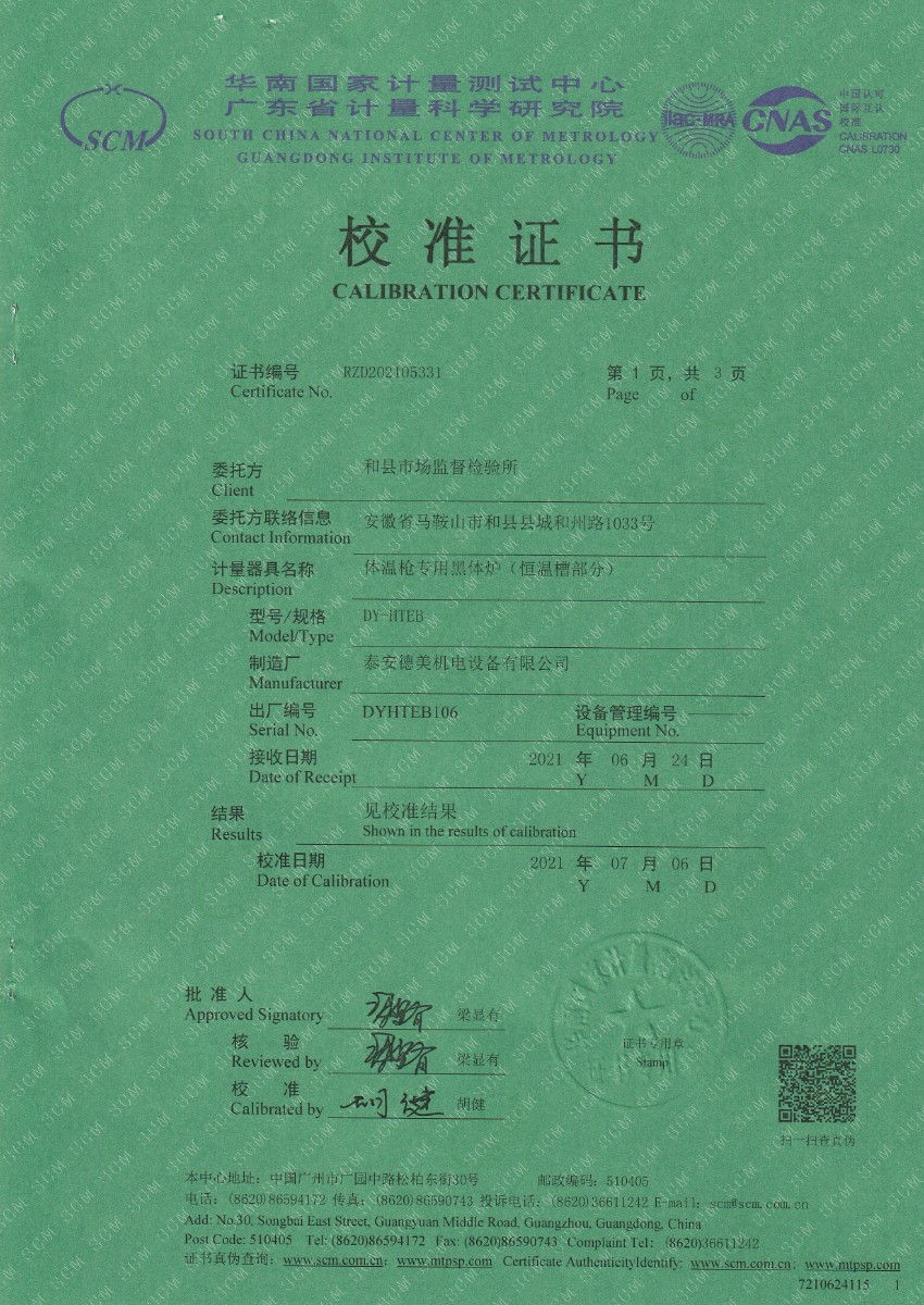 | 上一條:和縣市場(chǎng)監督檢驗所-耳溫黑體(黑體輻射源) | 下一條:智能干體儀(六位半精度)校準證書(shū) |