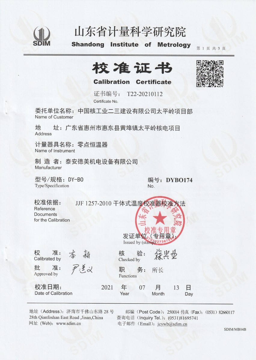| 上一條:中國核工業(yè)二三建設有限公司太平嶺項目部-標準鉑銠10-鉑熱電偶 | 下一條:智能干體儀(六位半精度)校準證書(shū) |