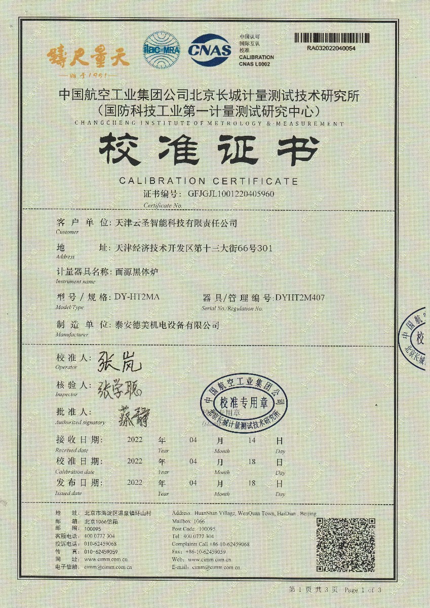 天津云圣智能科技有限責任公司-面源黑體爐 2022-4-22 本文被閱讀 15447 次