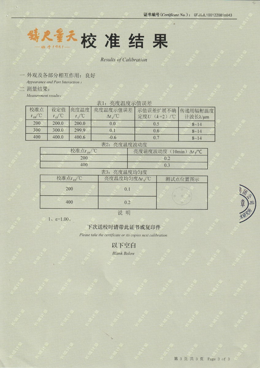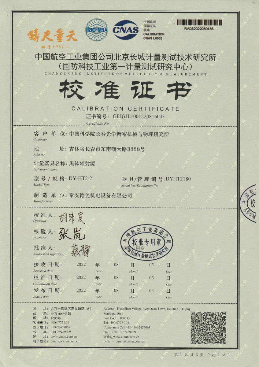 上一條:中國科學(xué)院長(cháng)春光學(xué)精密機械與物理研究所-黑體爐DY-HT2-1下一條:溫濕度檢定箱校準證書(shū)