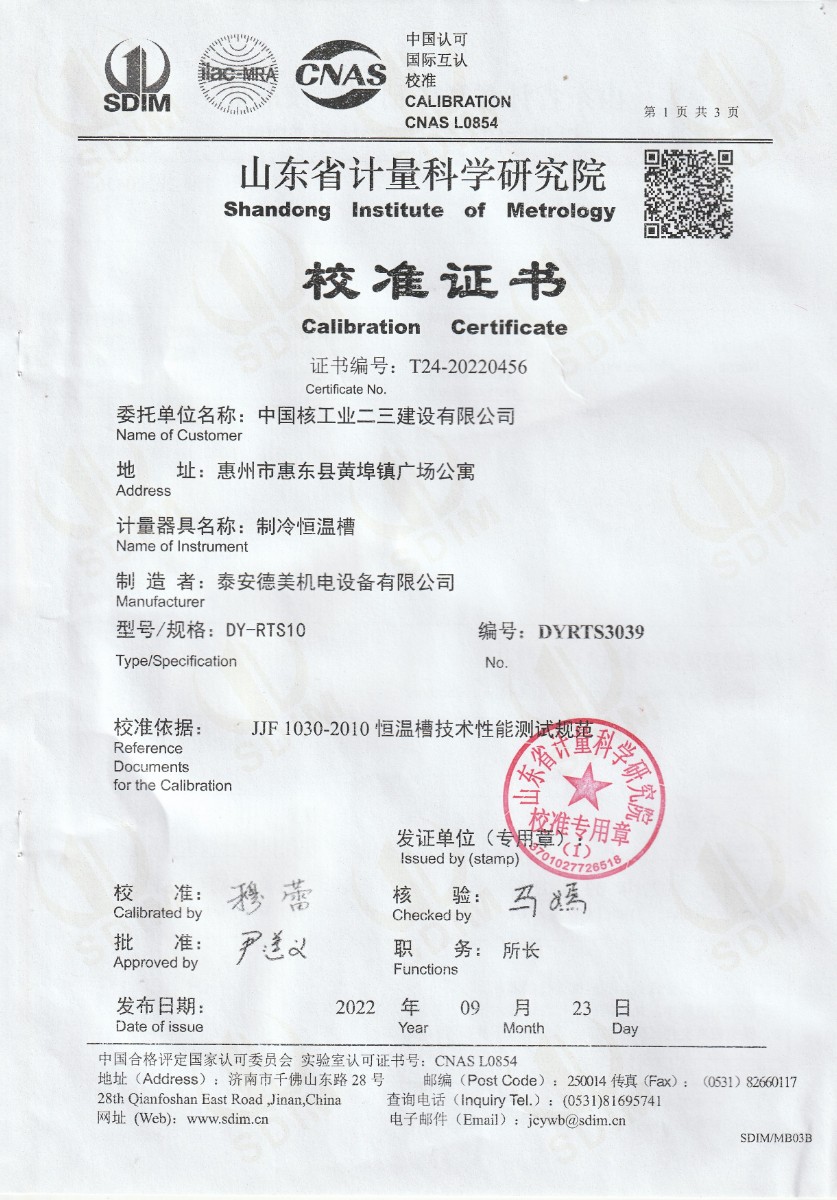 上一條:中國核工業(yè)二三建設有限公司-油槽下一條:溫濕度檢定箱校準證書(shū)