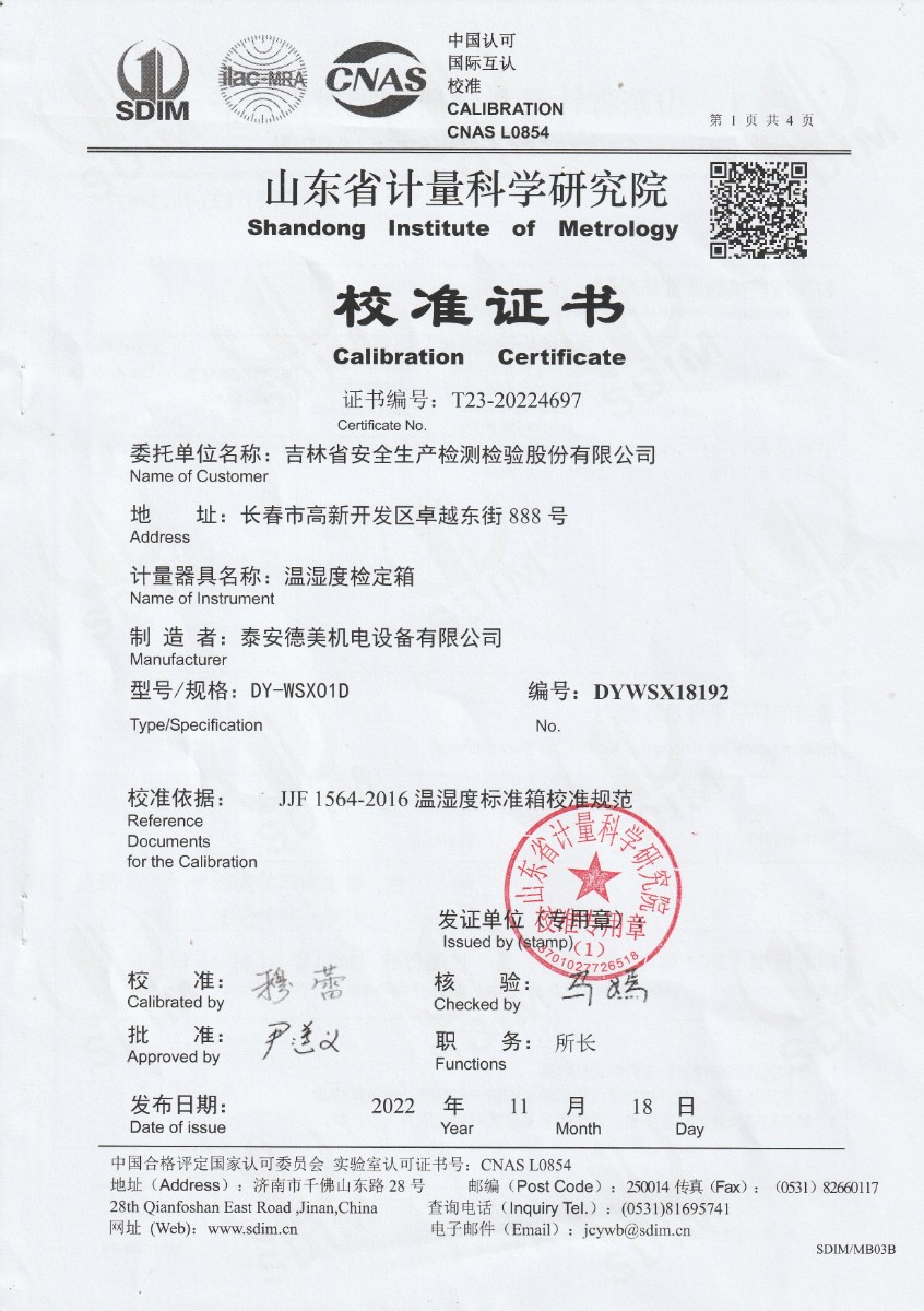 吉林省安全生產(chǎn)檢測檢驗股份有限公司 溫濕度檢定箱