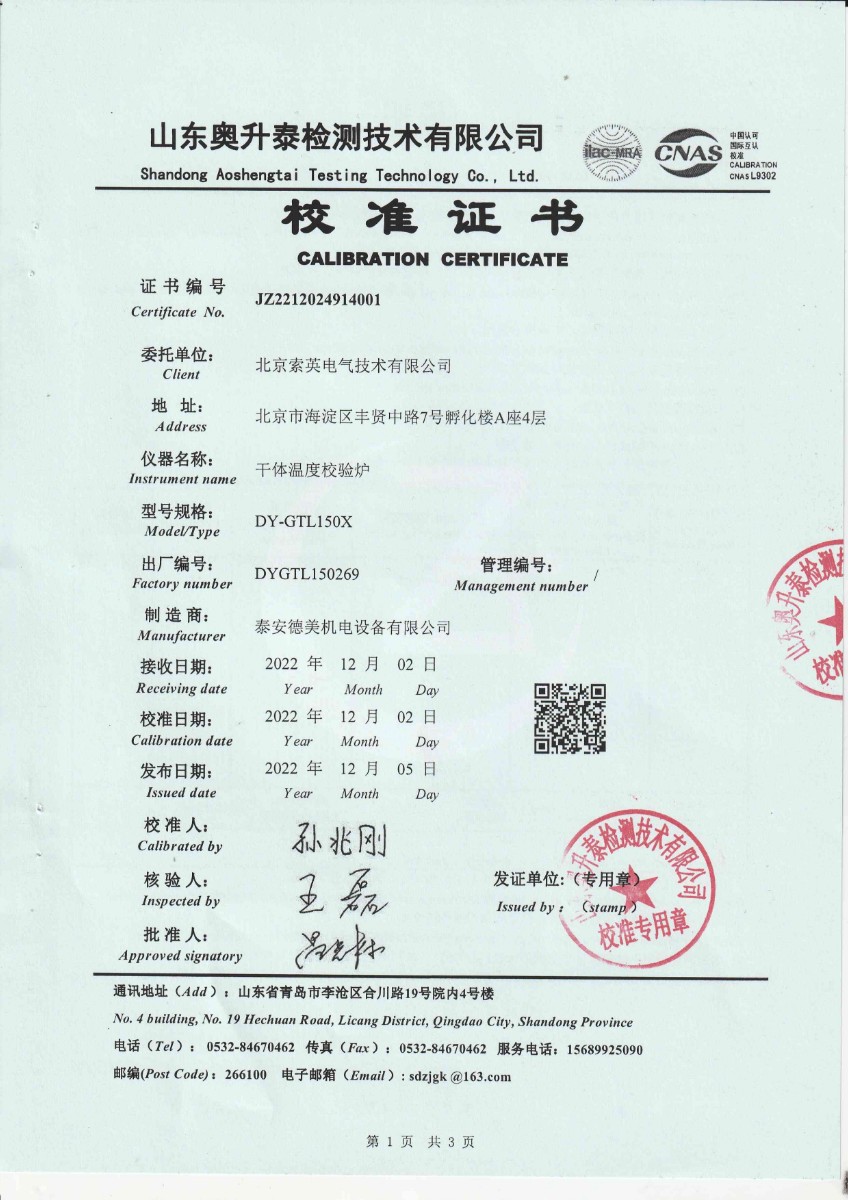 | 上一條:北京索英電氣技術(shù)有限公司 干體溫度校驗爐 | 下一條:露點(diǎn)儀檢定、校準證書(shū) |
