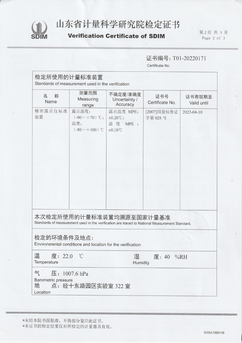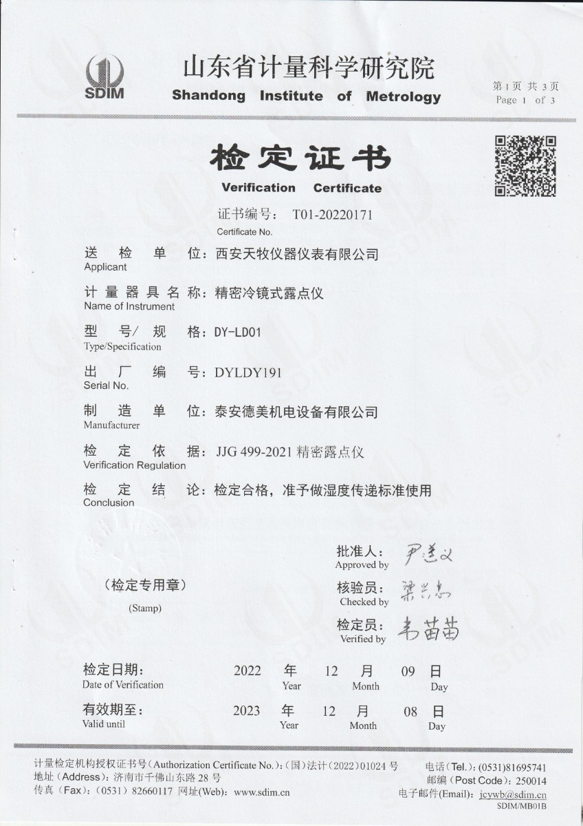 西安天牧儀器儀表有限公司 精密露點(diǎn)儀 檢定證書(shū) 2023-1-7 本文被閱讀 11137 次