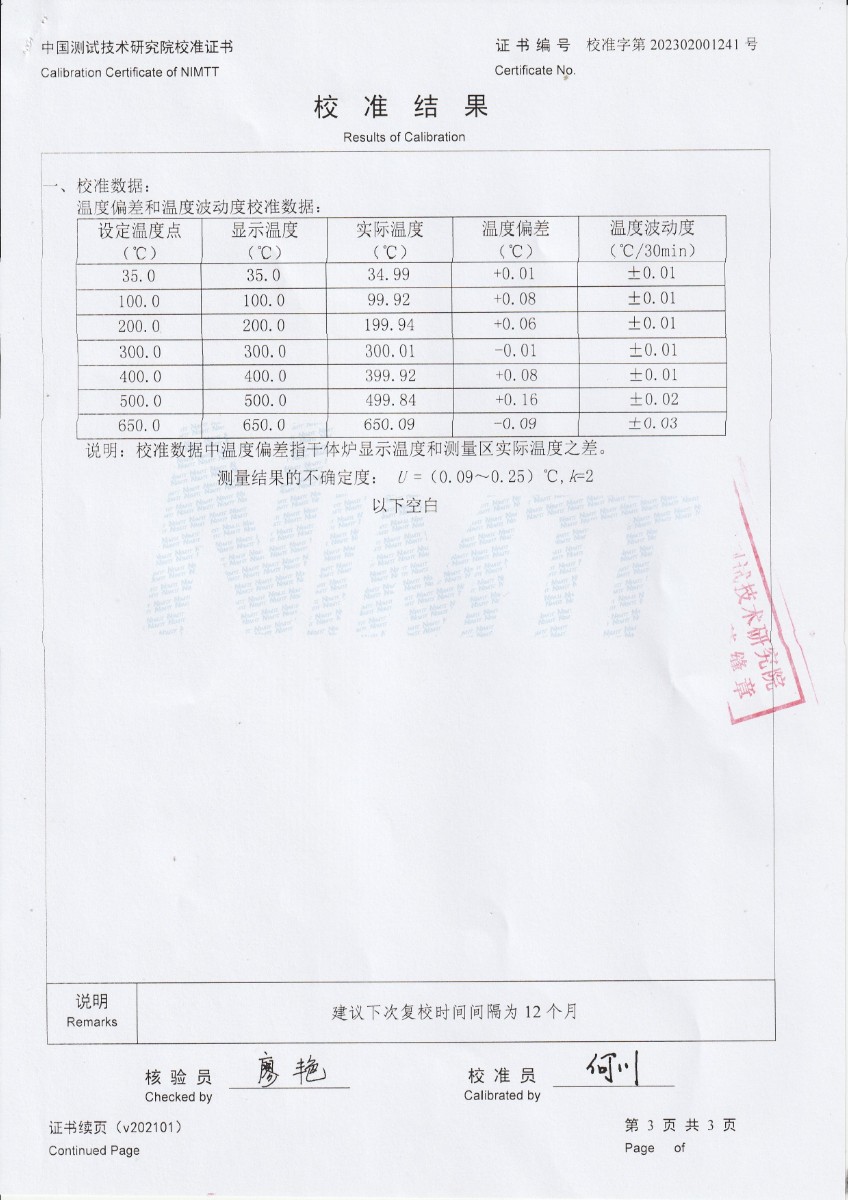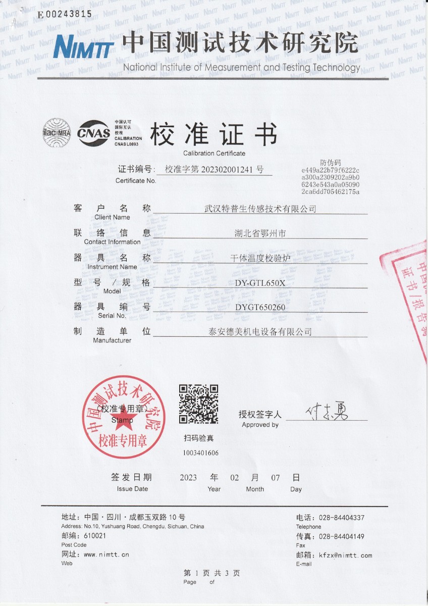 | 上一條:泰安德美機電設備有限公司 TRT4.82 精密輻射溫度計 校準證書(shū) | 下一條:智能干體儀(六位半精度)校準證書(shū) |