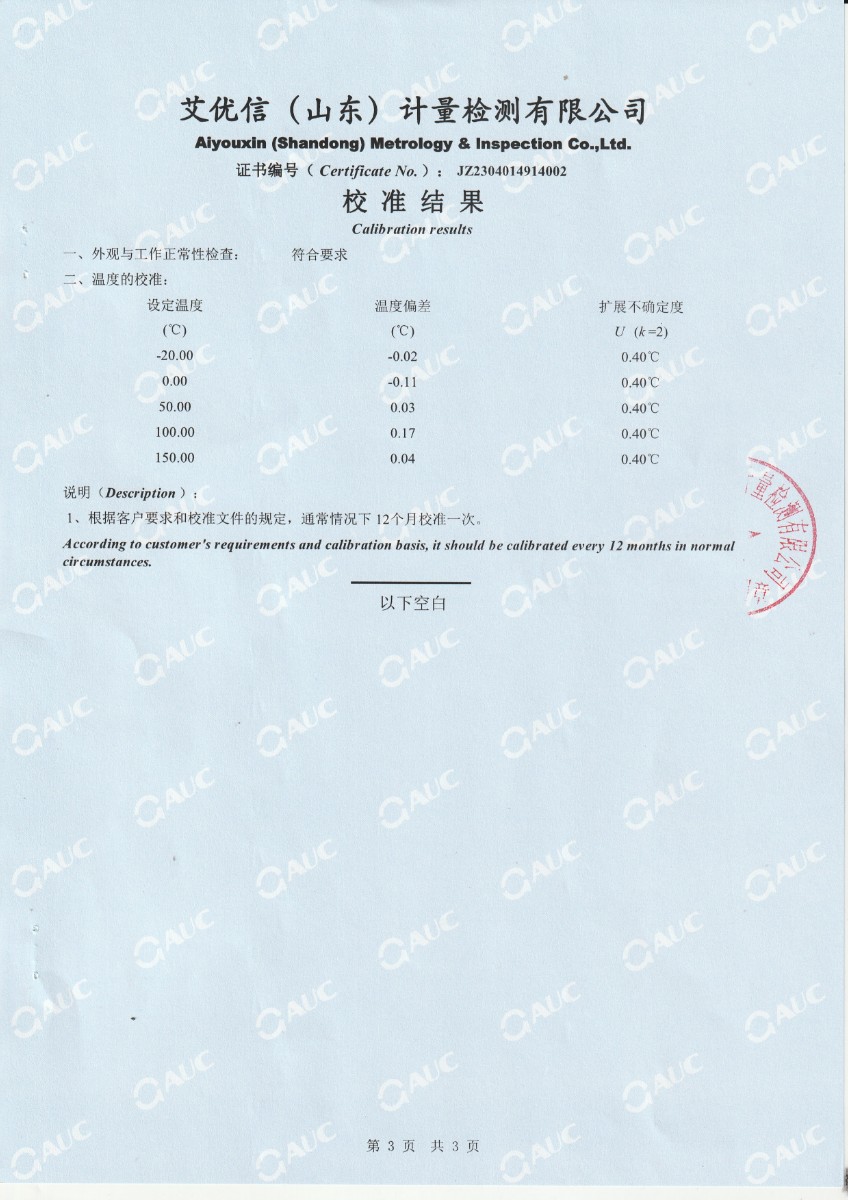 | 上一條:沈陽(yáng)吉地安風(fēng)電科技有限公司 干體溫度校驗爐 校準證書(shū)(1) | 下一條:露點(diǎn)儀檢定、校準證書(shū) |