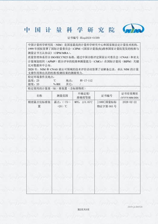 冷鏡式露點(diǎn)儀(-20-95℃)檢定證書(shū) 2024-6-17 本文被閱讀 7064 次