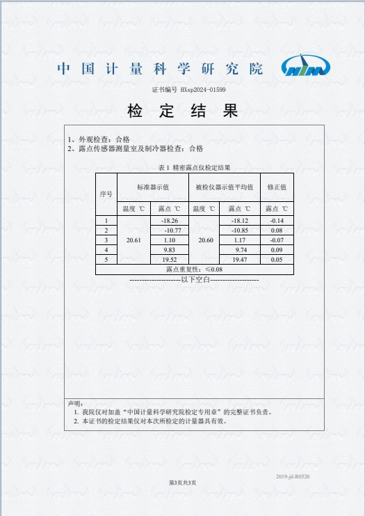 冷鏡式露點(diǎn)儀(-20-95℃)檢定證書(shū)