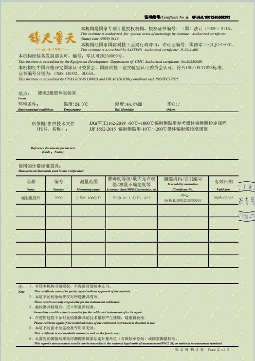 | 上一條:黑體輻射源(50-700℃)304所校準證書(shū) | 下一條:智能干體儀(六位半精度)校準證書(shū) |