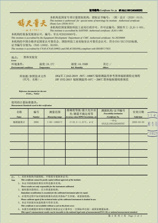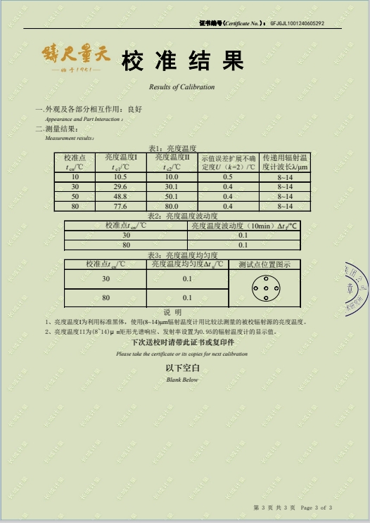 | 上一條:黑體輻射源(50-700℃)304所校準證書(shū) | 下一條:智能干體儀(六位半精度)校準證書(shū) |