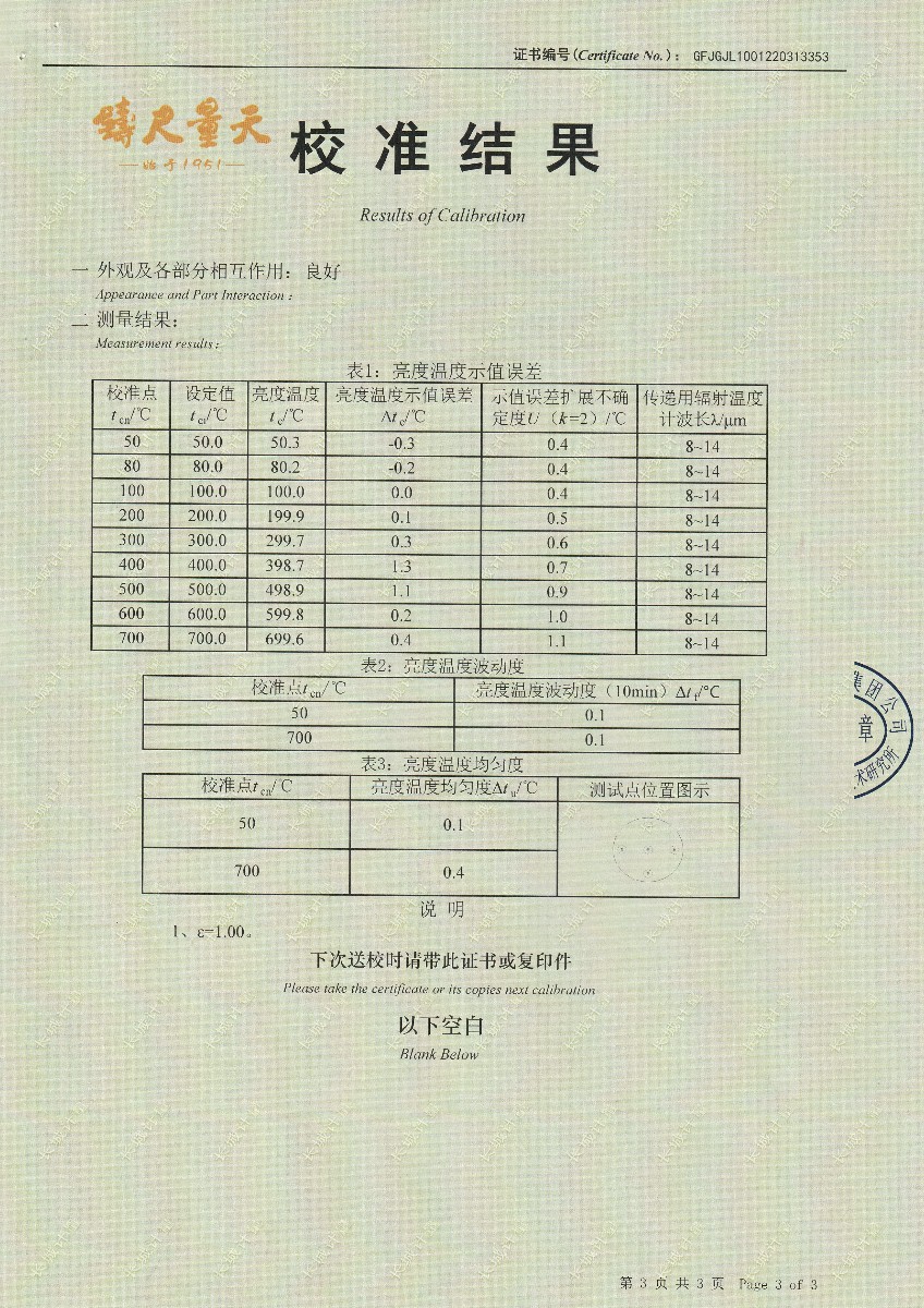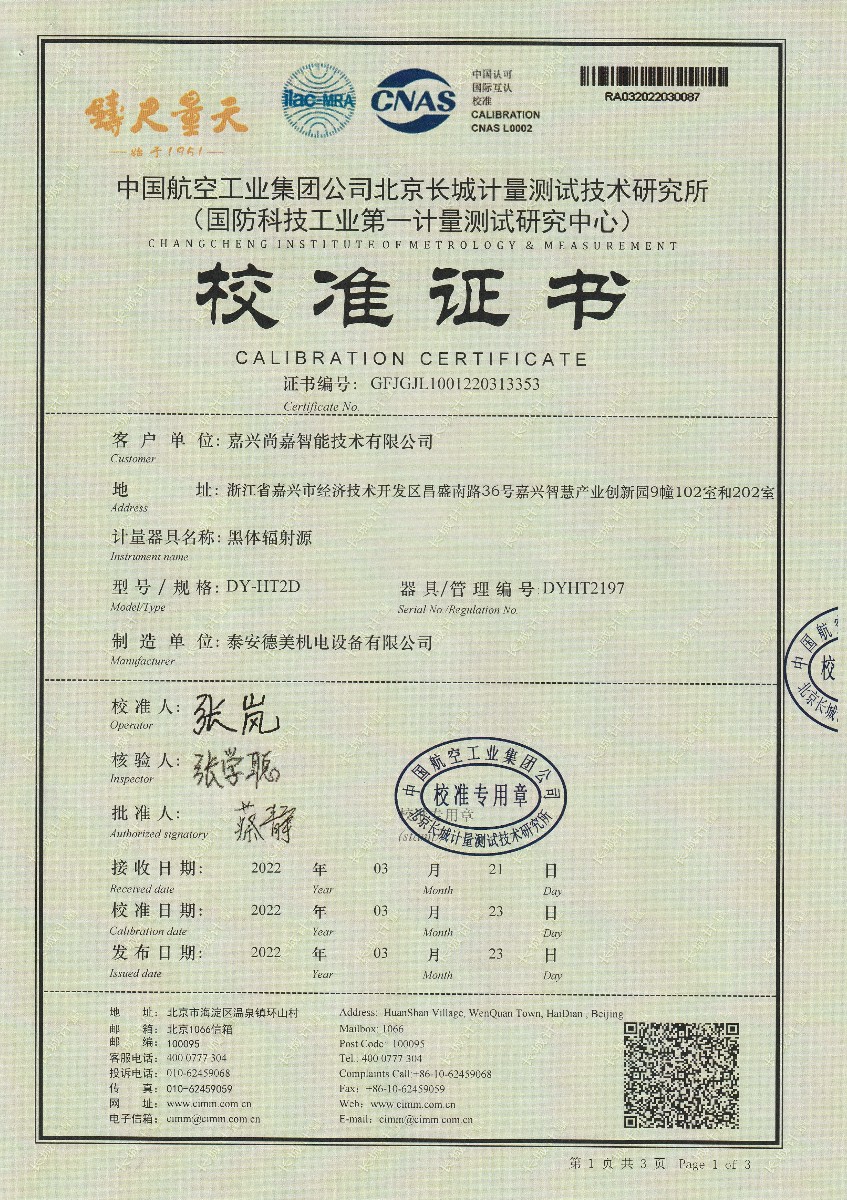 | 上一條:嘉興尚嘉智能技術(shù)有限公司-黑體輻射源(DY-HT1A) | 下一條:露點(diǎn)儀檢定、校準證書(shū) |