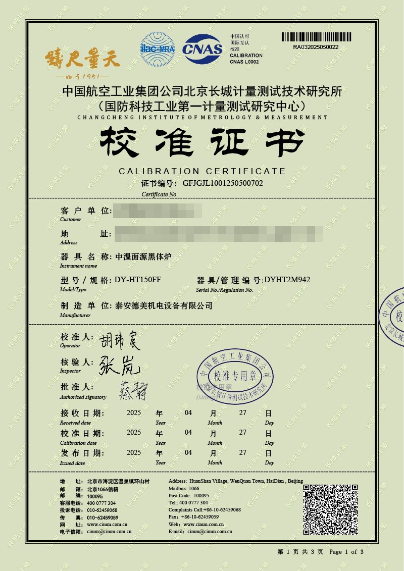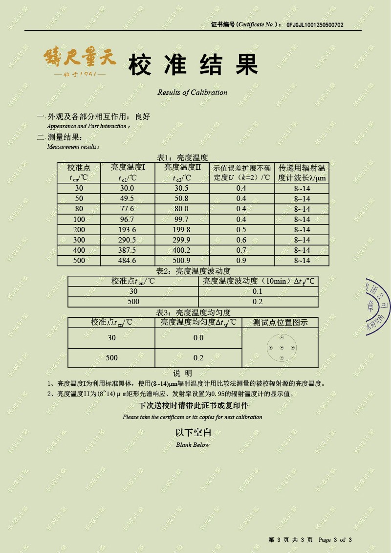 | 上一條:腔式黑體輻射源(-50-100℃)校準證書(shū) | 下一條:智能干體儀(六位半精度)校準證書(shū) |