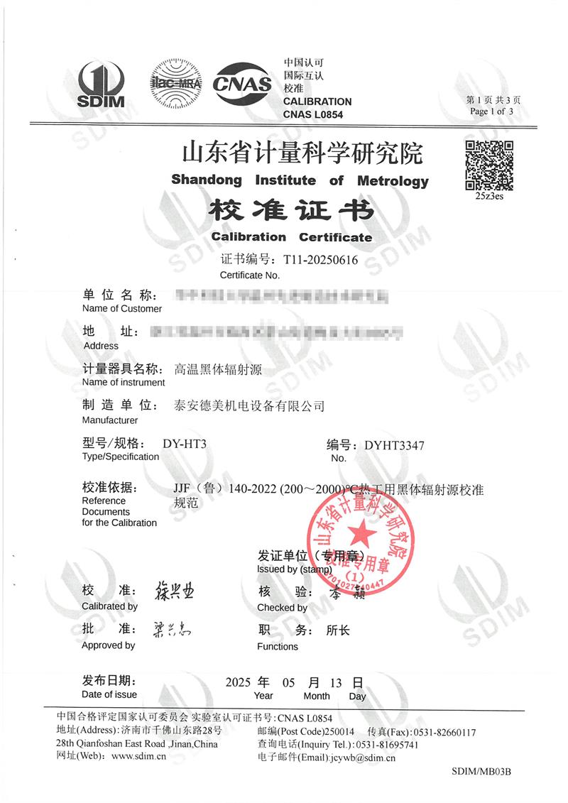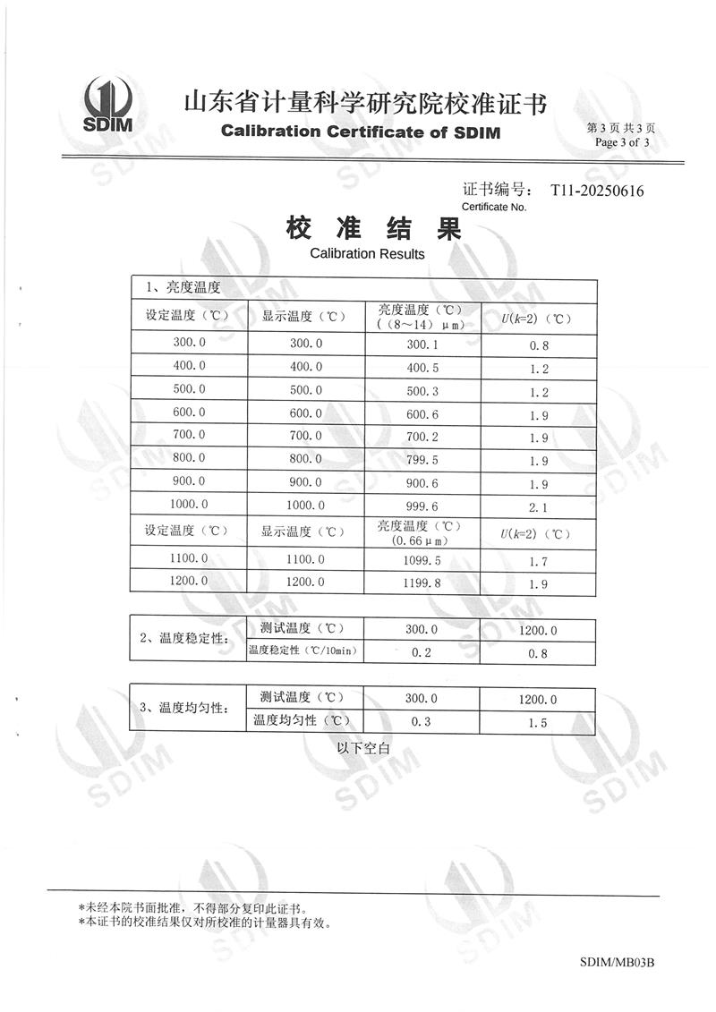 高溫黑體爐(300~1200℃)校準證書(shū) 2025-5-16 本文被閱讀 3286 次