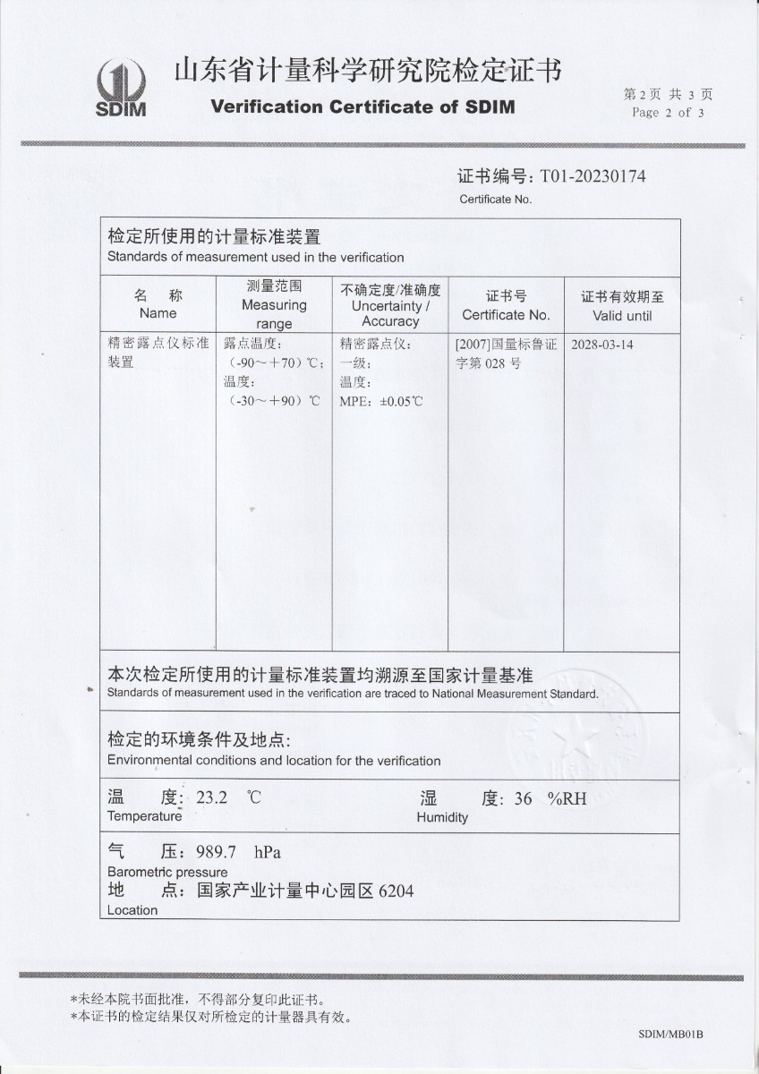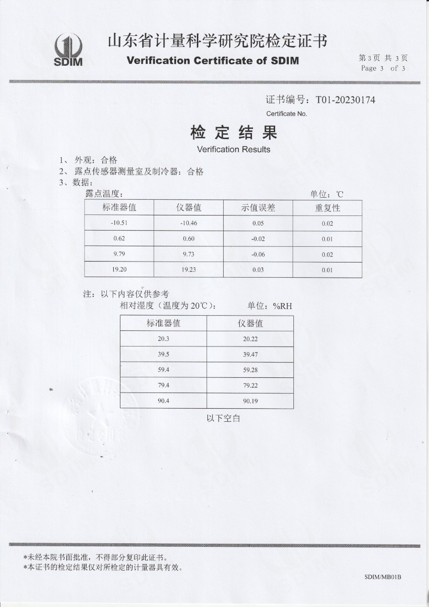 冷鏡式露點(diǎn)儀檢定證書(shū)