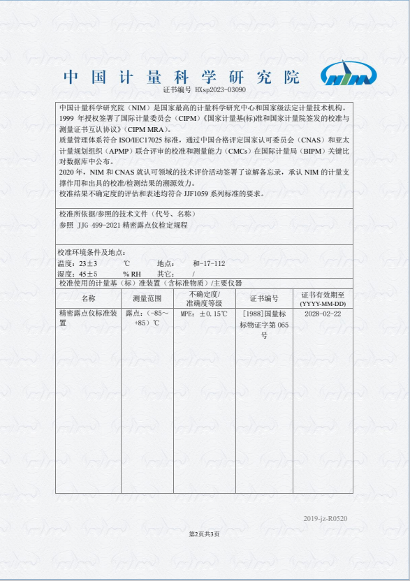 露點(diǎn)儀校準證書(shū) 2023-11-27 本文被閱讀 8151 次