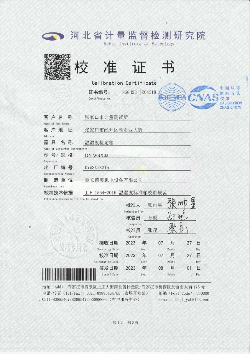 張家口市計量測試所-溫濕度檢定箱 2023-8-12 本文被閱讀 14955 次