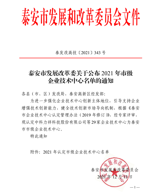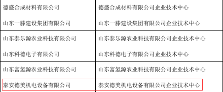 2021年12月13日泰安市發(fā)展和改革委員會(huì )公布市級企業(yè)技術(shù)名單,很榮幸泰安德美機電設備有限公司入圍泰安市市級企業(yè)技術(shù)。