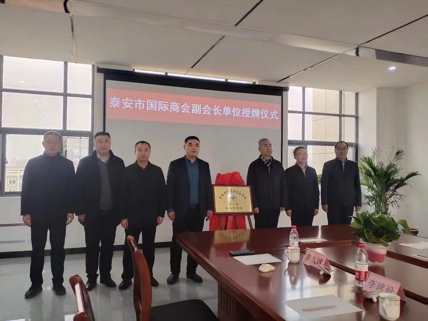 2022年1月6日下午,泰安市貿促會(huì )黨組書(shū)記、會(huì )長(cháng)陳勇,市貿促會(huì )黨組成員、副會(huì )長(cháng)張桂明,泰安市國際商會(huì )秘書(shū)長(cháng)趙傳兵,泰安市會(huì )展副總經(jīng)理胡闊偉,泰山區委副書(shū)記、區政府代區長(cháng)周鵬飛,區委常委、區政府黨組副書(shū)記朱光勝,區政府黨組成員、區政府辦公室主任孫一國,區政府黨組成員、區政府辦公室副主任孫大偉,區貿促會(huì )黨組書(shū)記李建設,區貿促會(huì )會(huì )長(cháng)湯琳琳,省莊鎮黨委書(shū)記謝慧清,省莊鎮鎮長(cháng)季秀華等相關(guān)領(lǐng)導蒞臨泰安德美新廠(chǎng)區舉行隆重的授牌儀式,為泰安德美機電設備有限公司董事長(cháng)秦大斌先生授牌,泰安德美機電設備有限公司榮升為泰安市國際商會(huì )副會(huì )長(cháng)單位!