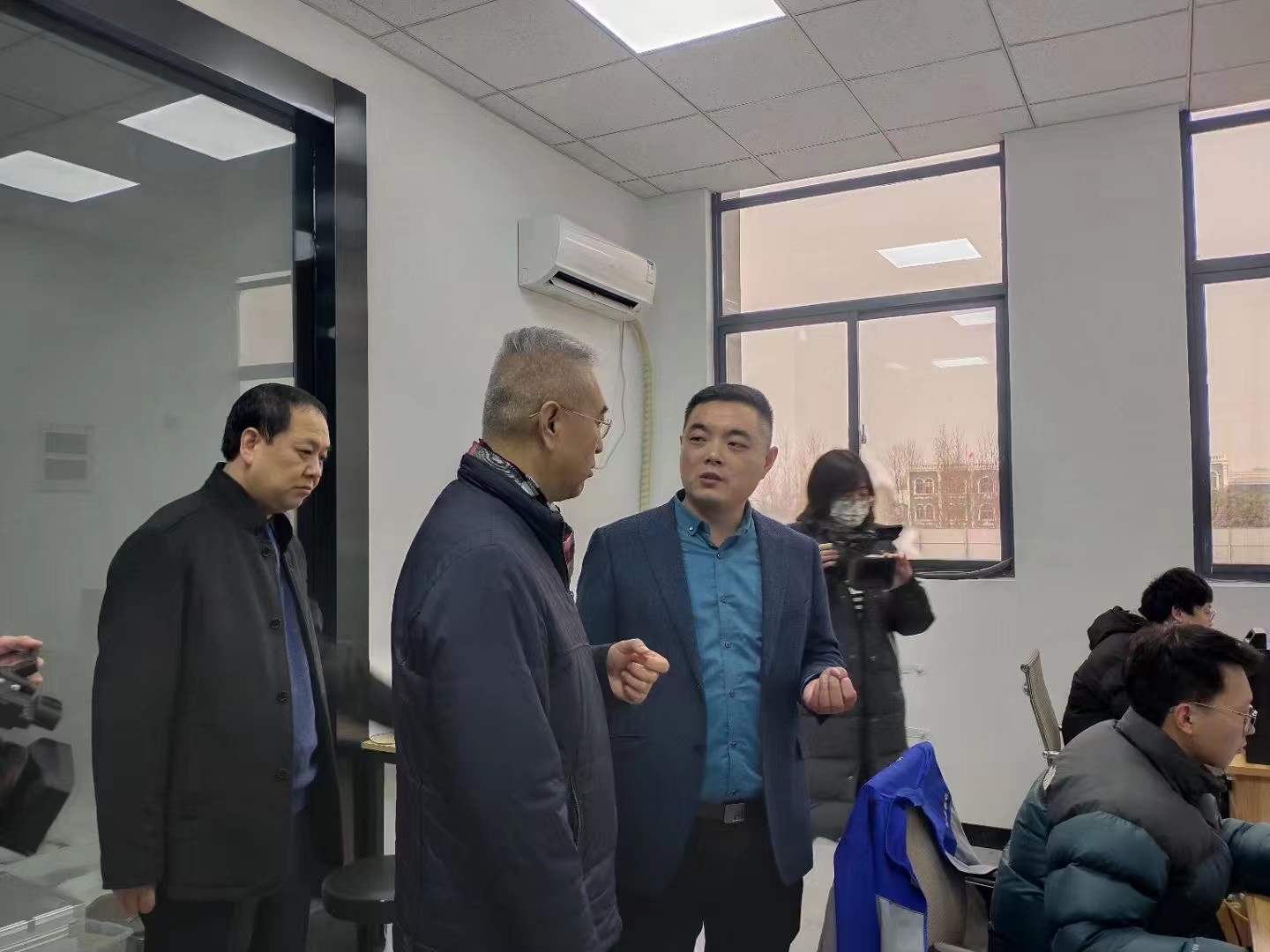 授牌會(huì )議結束后領(lǐng)導們在泰安德美董事長(cháng)秦大斌先生的陪同下參觀(guān)公司指導工作,董事長(cháng)秦大斌先生詳細介紹公司的熱工計量產(chǎn)品(熱電偶/熱電阻自動(dòng)檢定系統及群爐控制、干體式溫度校驗爐/干體爐、黑體輻射源/黑體爐、溫濕度檢定箱、溫濕度均勻性自動(dòng)測試系統、熱電偶檢定爐、熱電偶退火爐、高精度恒溫槽等);壓力計量產(chǎn)品(手動(dòng)壓力校驗臺、便攜式氣壓源、數字壓力表、智能壓力校驗儀等);長(cháng)度計量產(chǎn)品(鋼直尺檢定裝置,鋼卷尺檢定裝置,光柵指示表檢定儀,水平尺檢定儀等)、以及公司企業(yè)文化和產(chǎn)業(yè)前景,得到了領(lǐng)導們的高度贊許與認同。