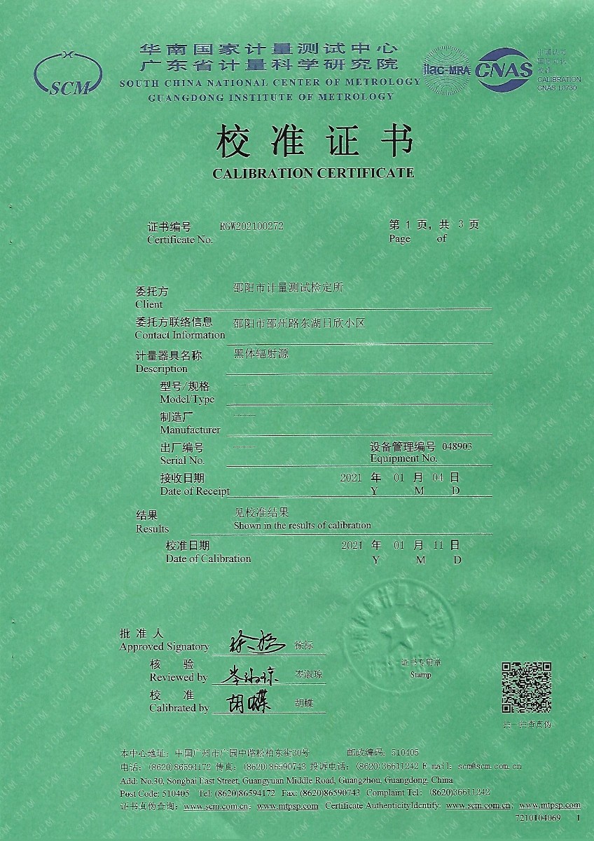 上一條:長(cháng)沙彼樂(lè )機電設備有限公司-體溫黑體爐耳溫部分下一條:智能干體儀(六位半精度)校準證書(shū)