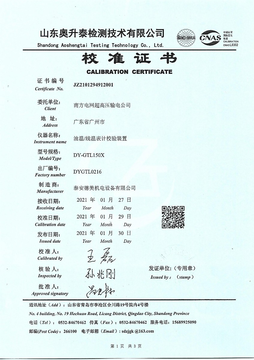 | 上一條:長(cháng)沙彼樂(lè )機電設備有限公司-體溫黑體爐額溫部分 | 下一條:智能干體儀(六位半精度)校準證書(shū) |