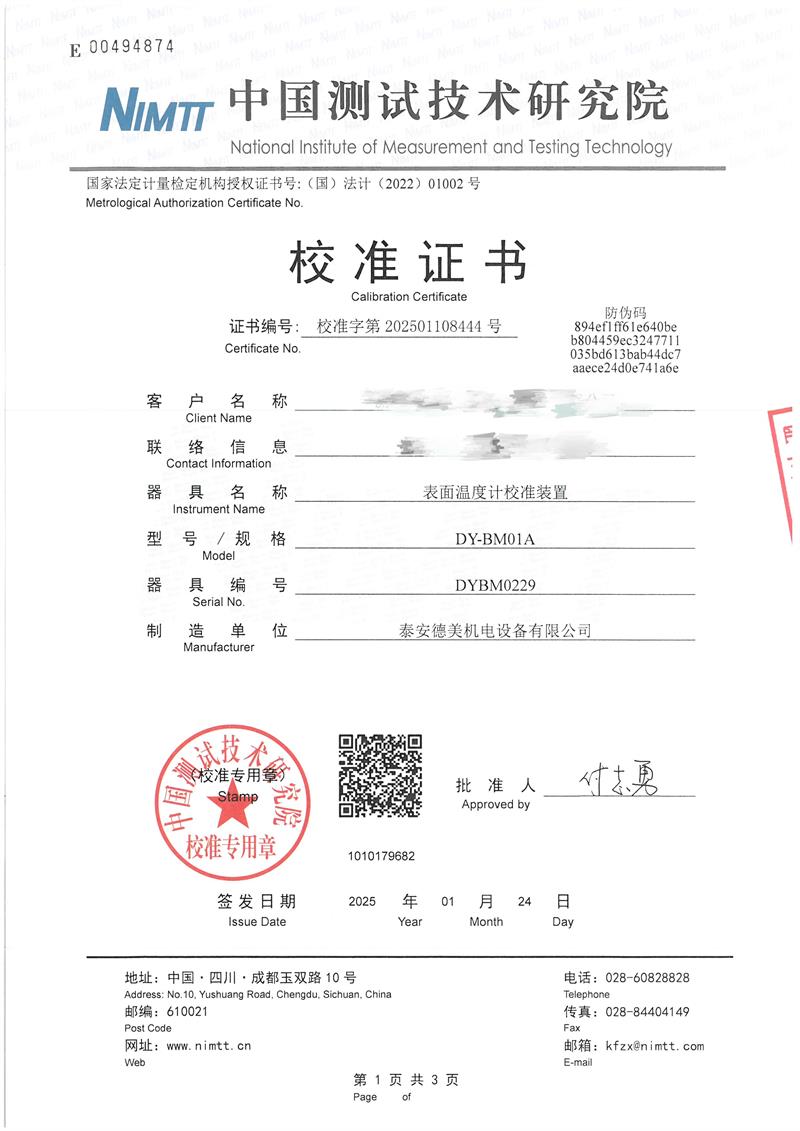 表面溫度計校準裝置-校準證書(shū) 2025-2-14 本文被閱讀 5524 次