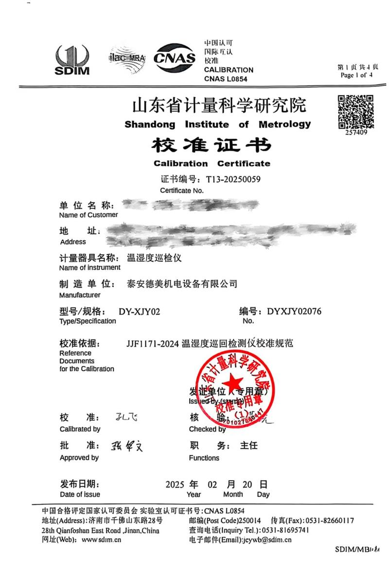 溫濕度巡檢儀校準證書(shū) 2025-2-22 本文被閱讀 4769 次