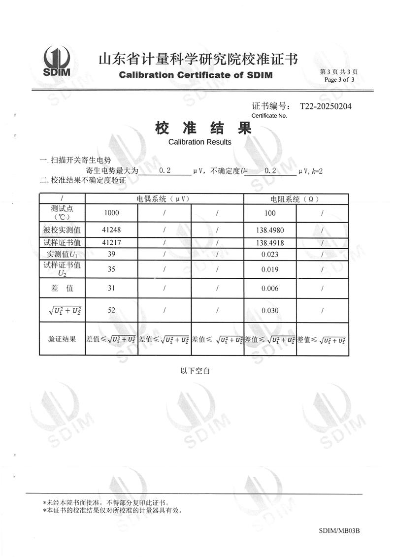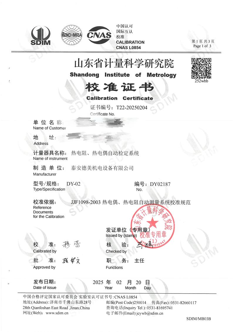熱電阻、熱電偶自動(dòng)檢定系統校準證書(shū) 2025-2-26 本文被閱讀 4553 次