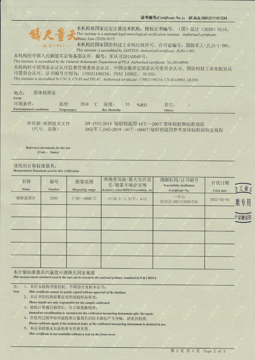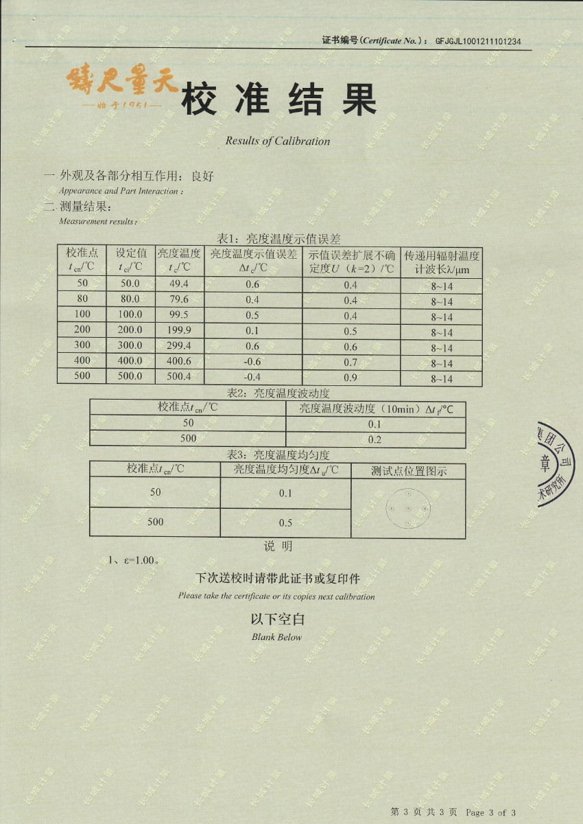 | 上一條:東營(yíng)市安全工器具質(zhì)量檢測有限公司-黑體輻射源(-15-80℃) | 下一條:智能干體儀(六位半精度)校準證書(shū) |