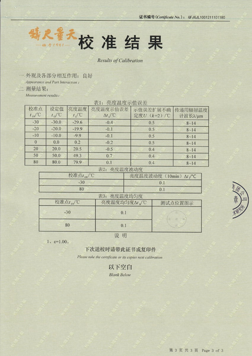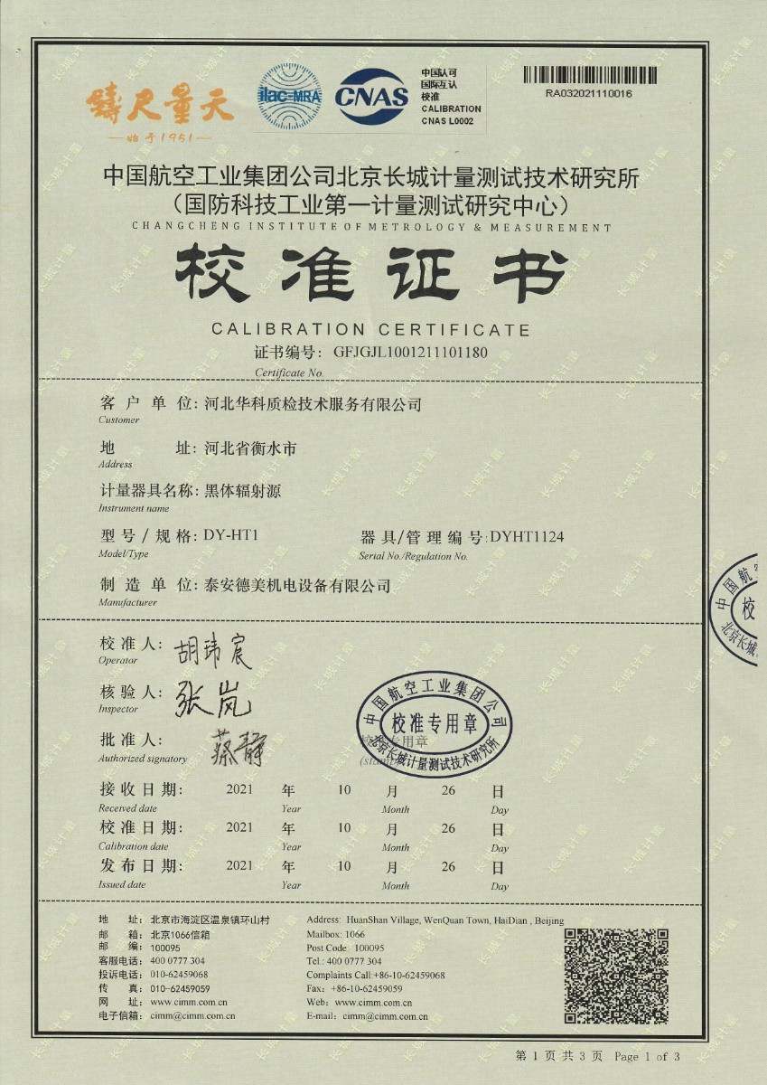 | 上一條:東營(yíng)市安全工器具質(zhì)量檢測有限公司-黑體輻射源(50-500℃) | 下一條:智能干體儀(六位半精度)校準證書(shū) |