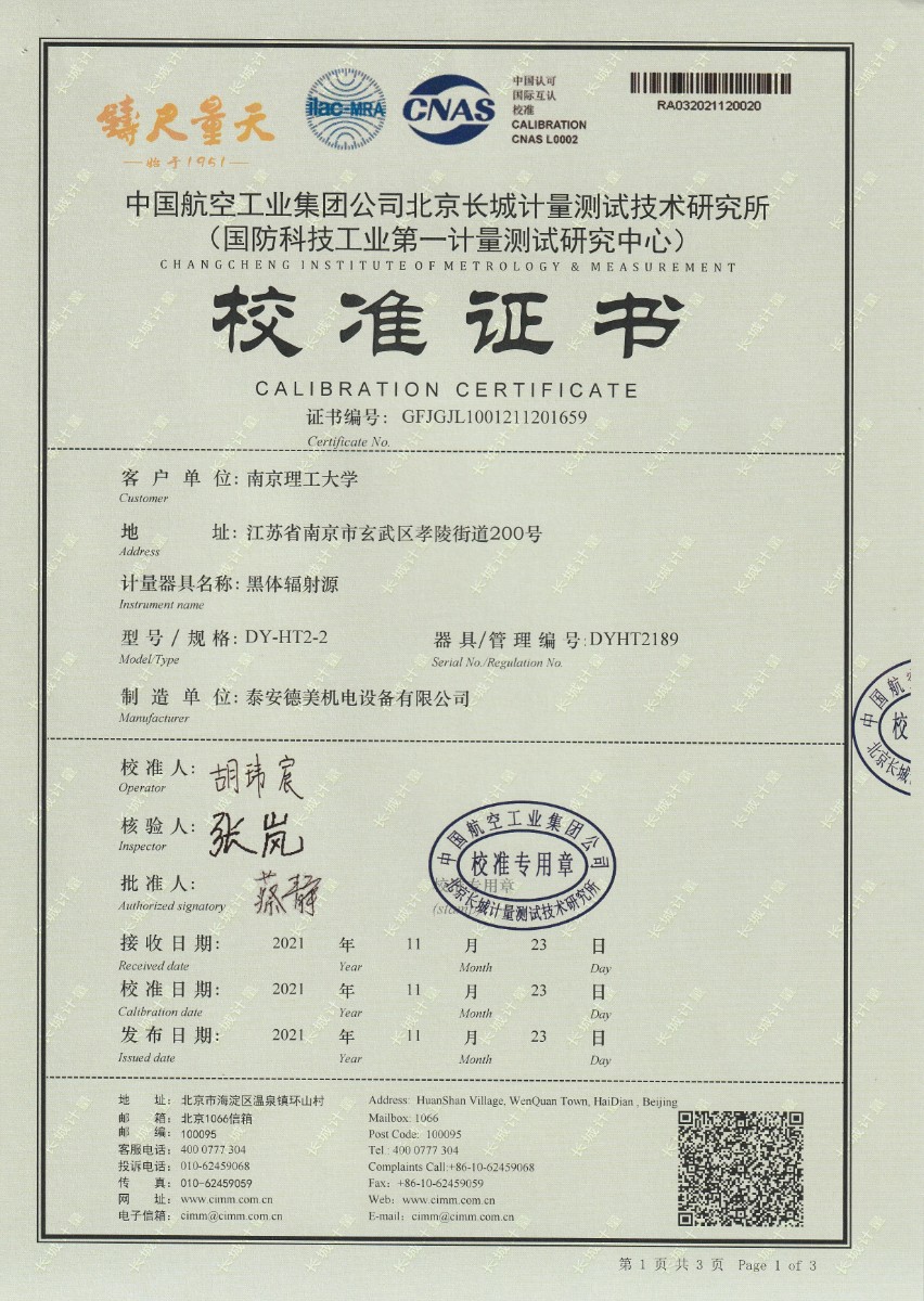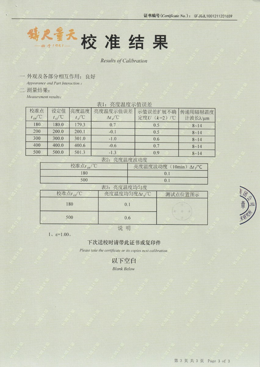 | 上一條:南京理工大學(xué)-黑體輻射源校準證書(shū)40-250℃ | 下一條:冷鏡式露點(diǎn)儀校準證書(shū) |