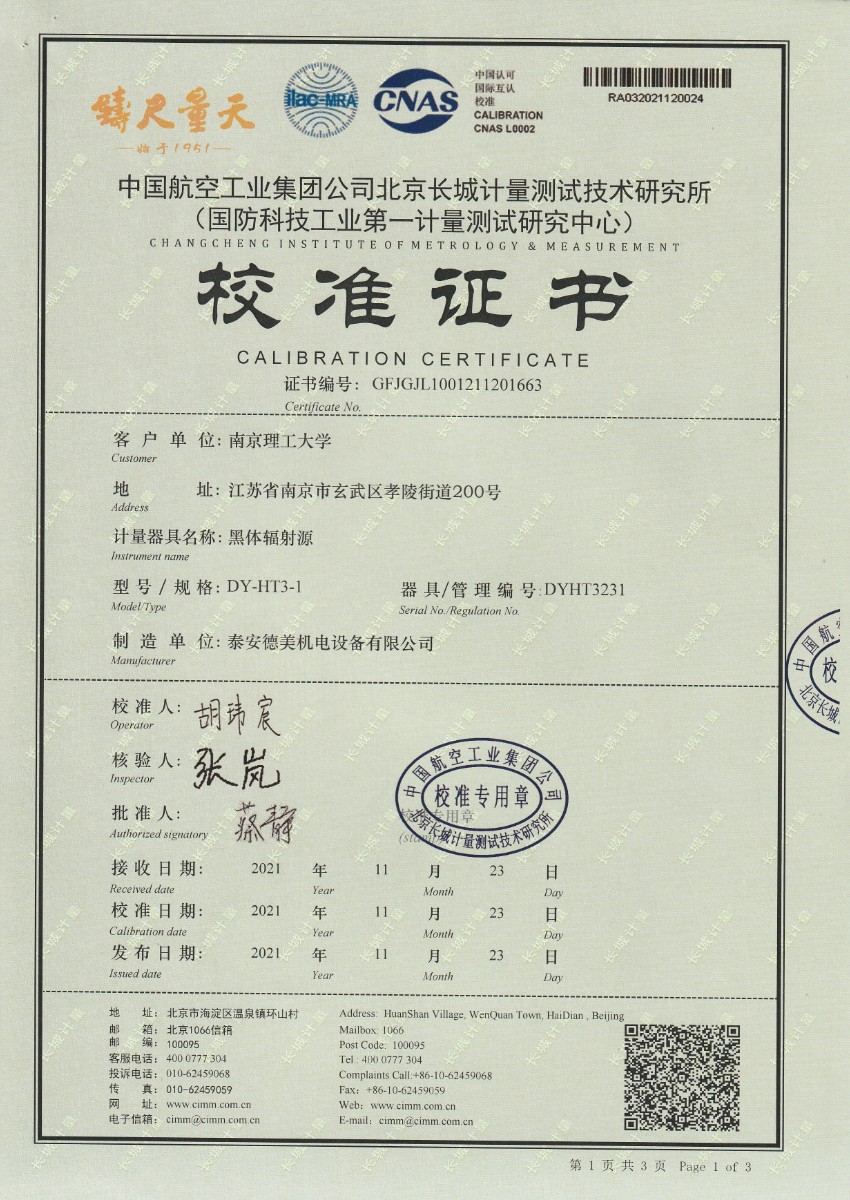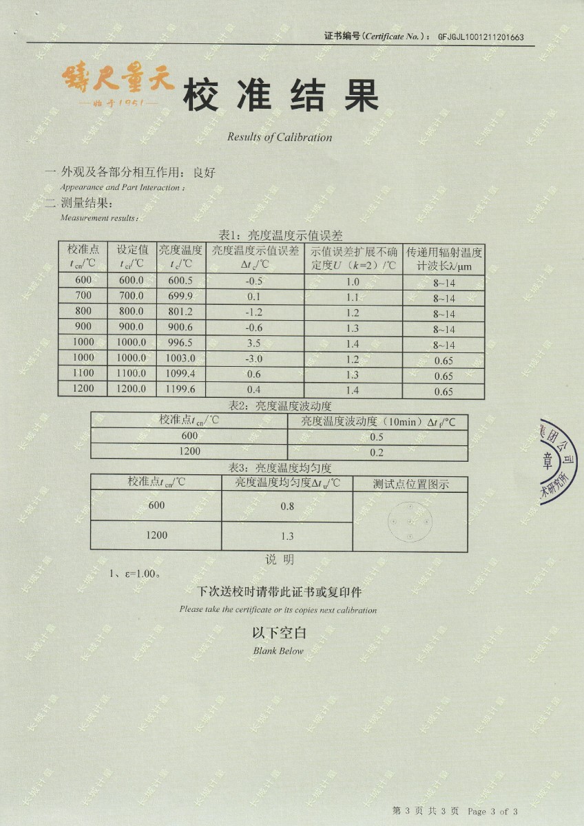 | 上一條:南京理工大學(xué)-黑體輻射源校準證書(shū)350-800℃ | 下一條:冷鏡式露點(diǎn)儀校準證書(shū) |