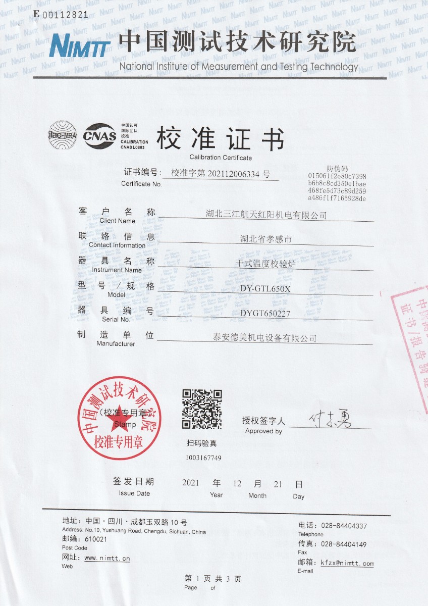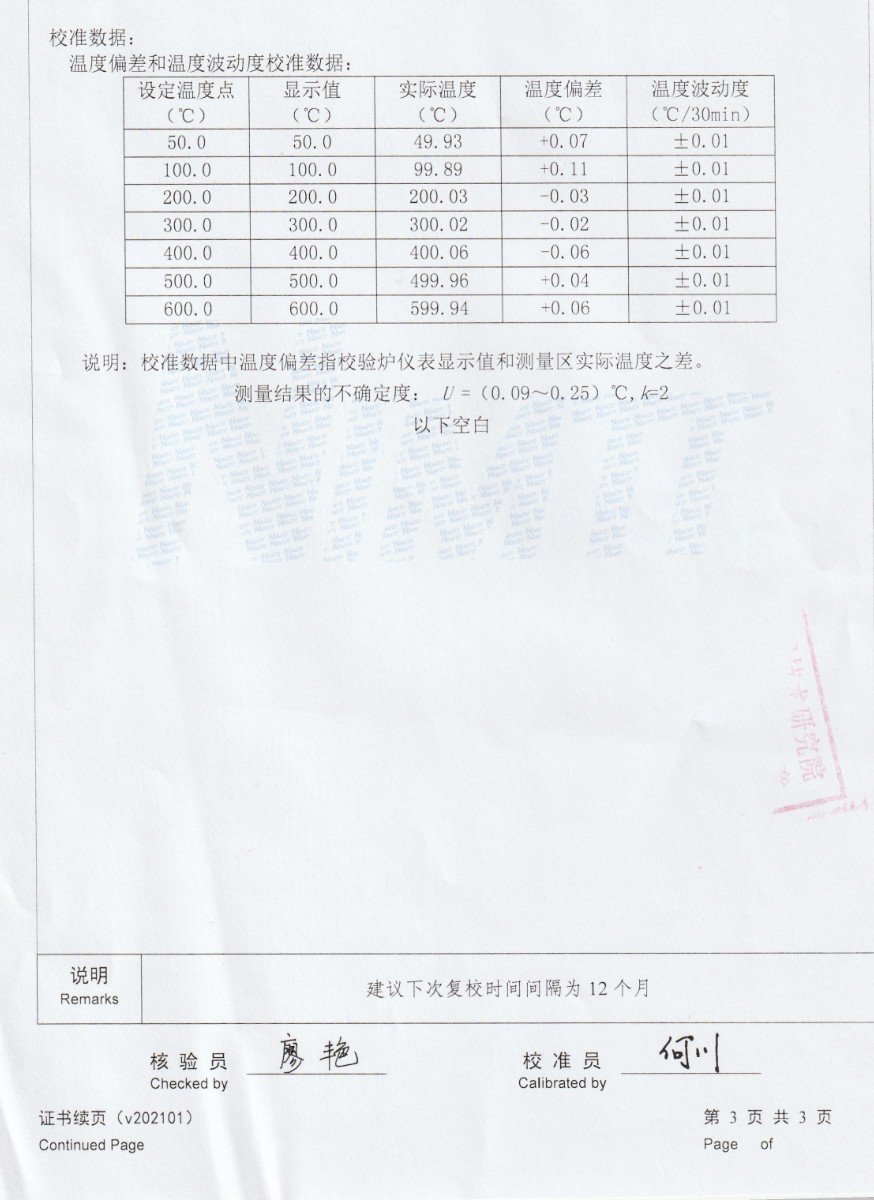| 上一條:晶科能源(海寧)有限公司-精密露點(diǎn)儀(溫度) | 下一條:智能干體儀(六位半精度)校準證書(shū) |