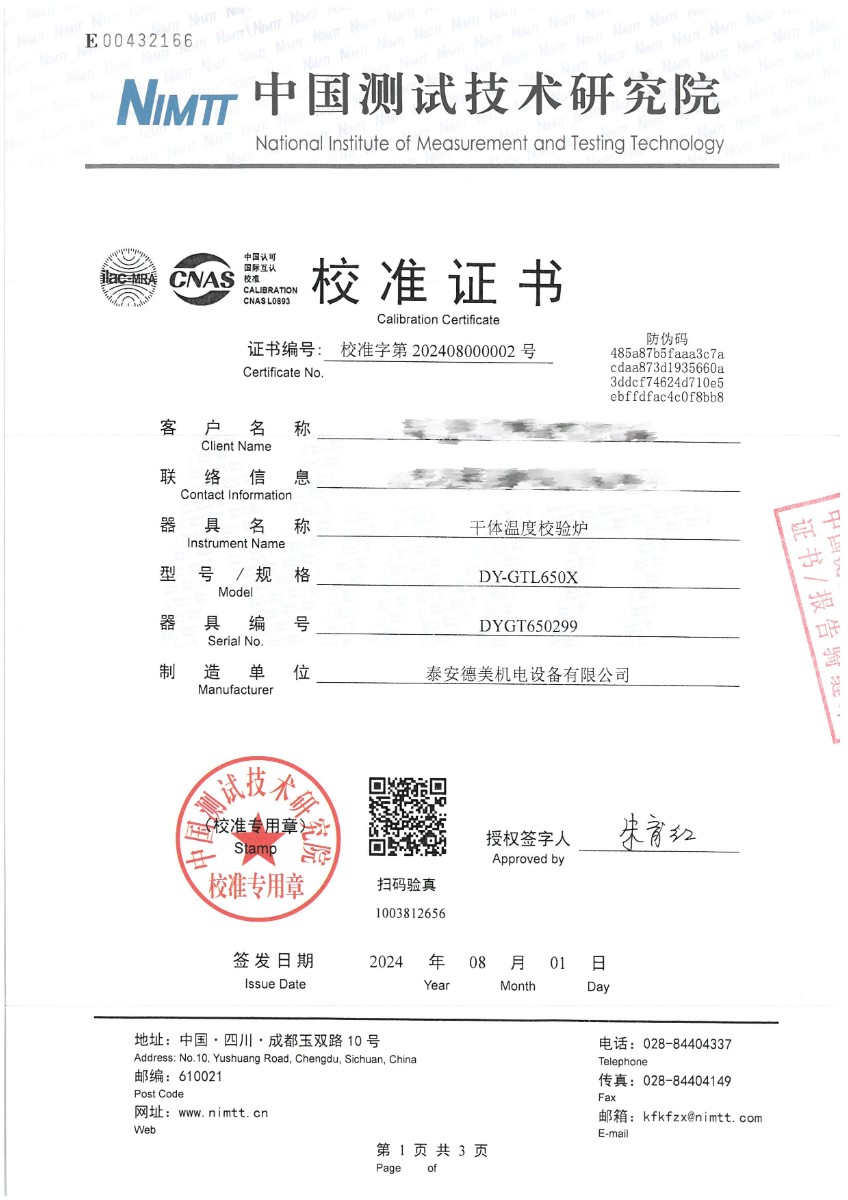干體爐299(室溫+5℃~650℃)校準證書(shū) 2024-8-5 本文被閱讀 6348 次