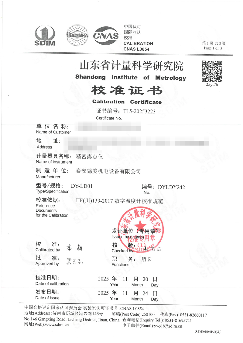 露點(diǎn)儀檢定、校準證書(shū) 2025-12-4 本文被閱讀 101 次