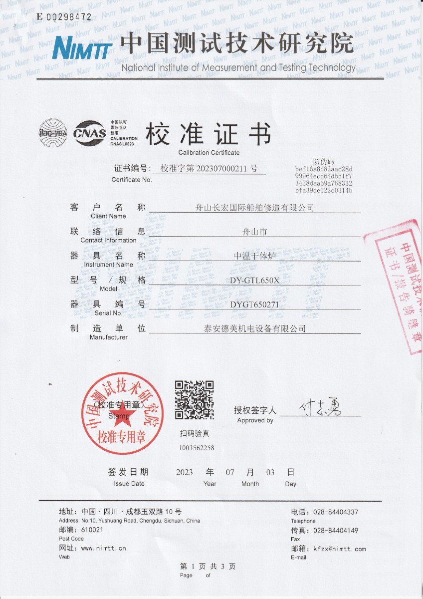 舟山長(cháng)宏國際船舶修造有限公司-中溫干體爐 2023-7-13 本文被閱讀 12090 次