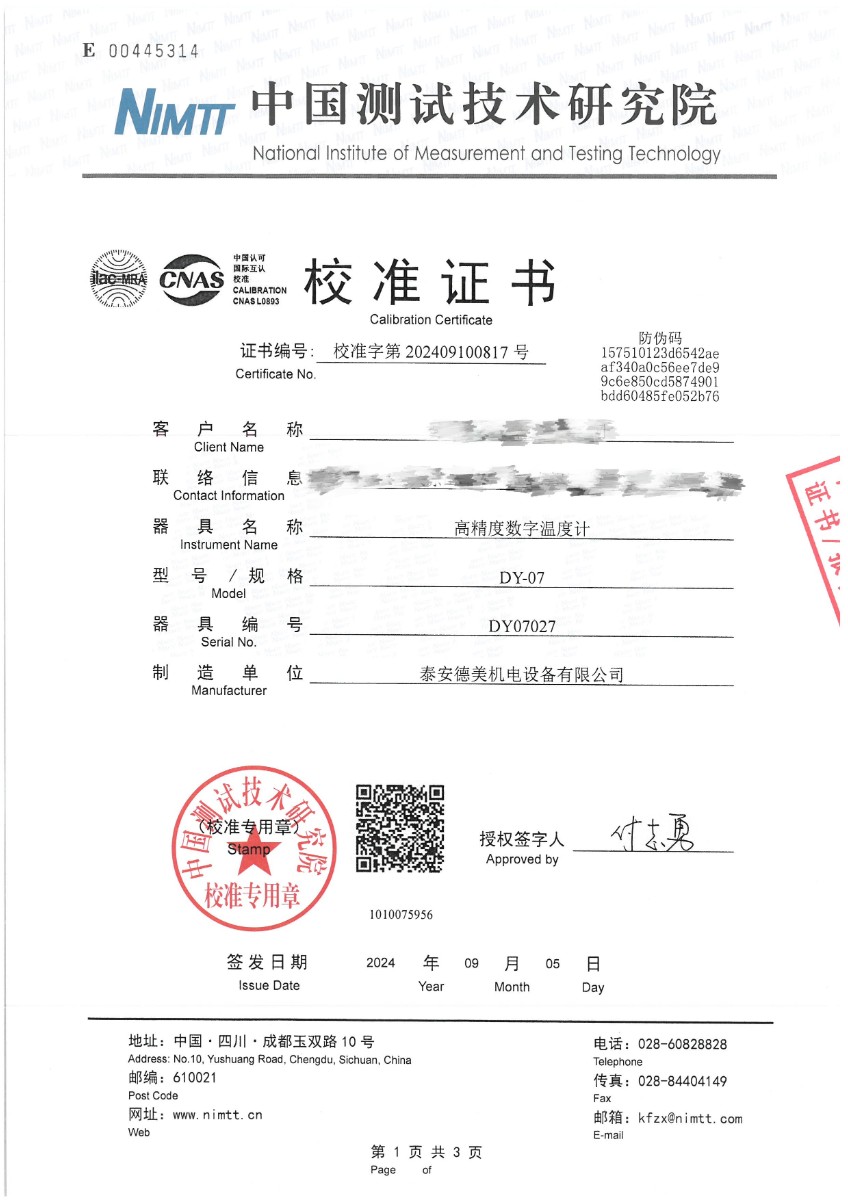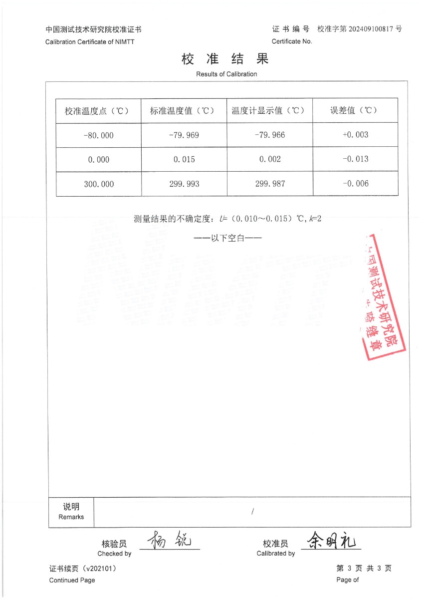 高精度數字溫度計(-80~300℃)校準證書(shū) 2024-9-7 本文被閱讀 6283 次