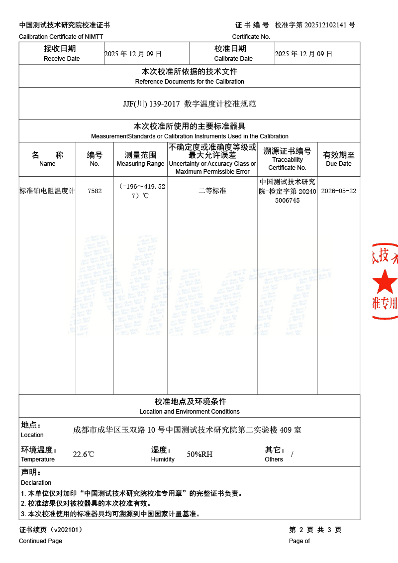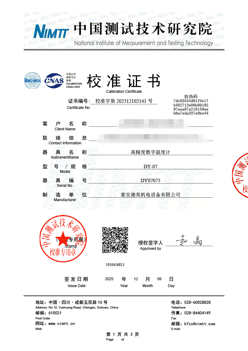 高精度數字溫度計校準證書(shū) 2025-12-11 本文被閱讀 85 次
