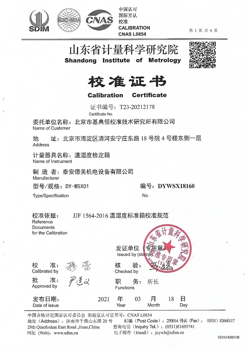 北京市基典恒校準技術(shù)研究所有限公司-溫濕度檢定箱 2021-3-29 本文被閱讀 14370 次