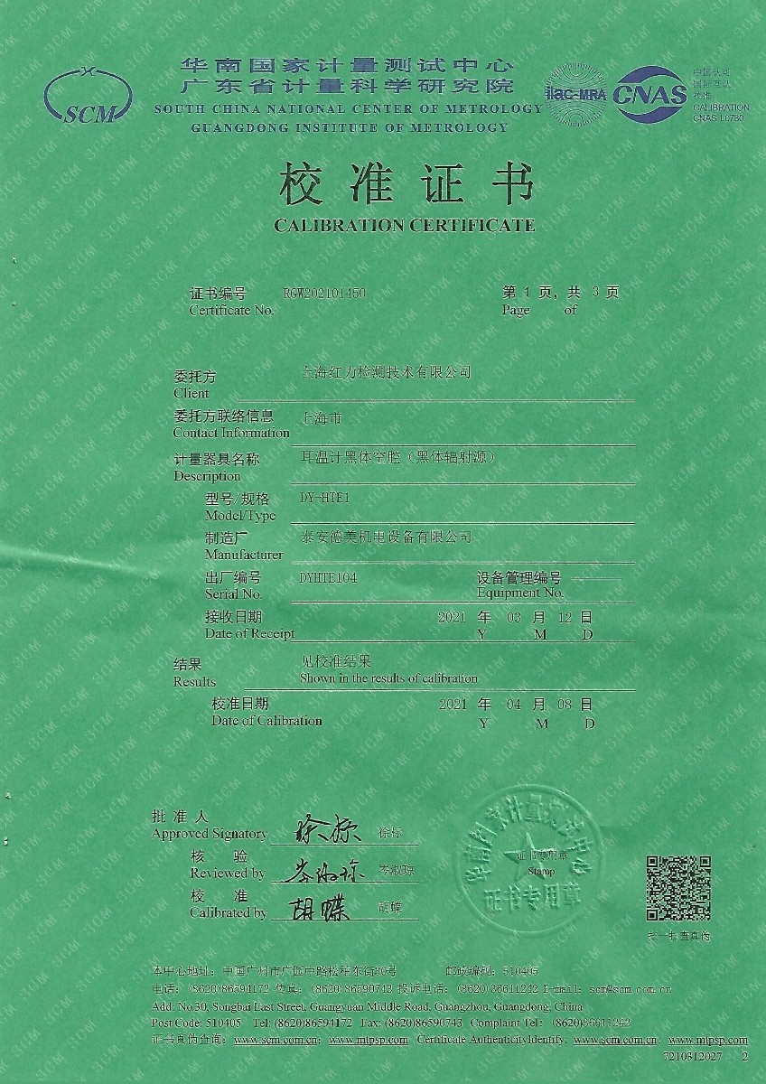| 上一條:上海紅力檢測技術(shù)有限公司-額溫計黑體空腔 | 下一條:智能干體儀(六位半精度)校準證書(shū) |