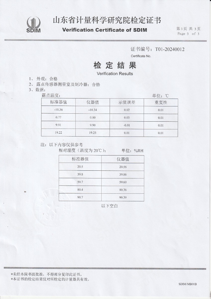 冷鏡式露點(diǎn)儀檢定證書(shū)