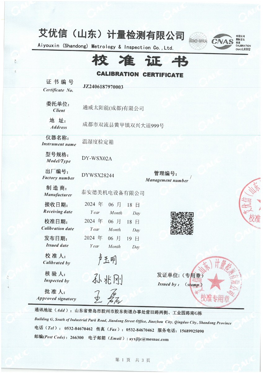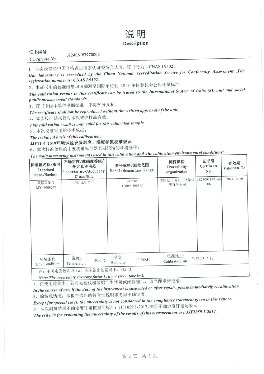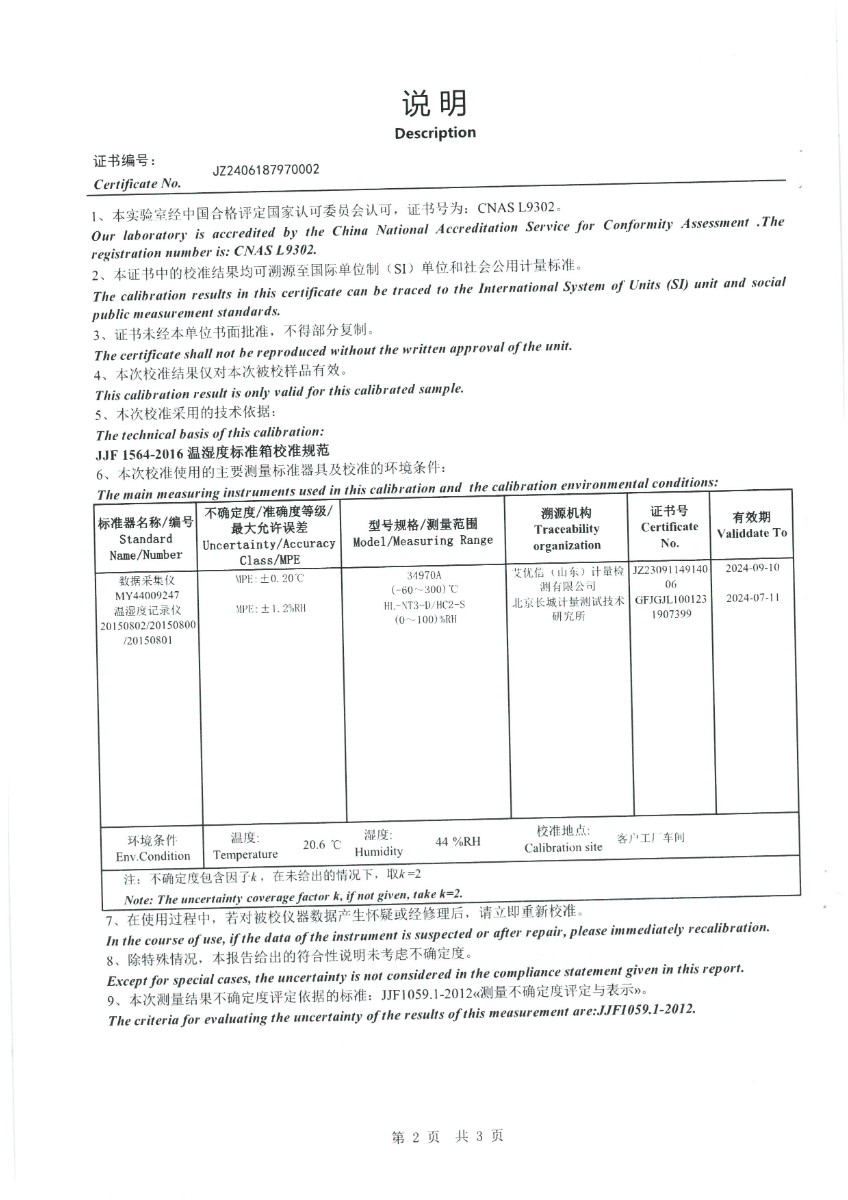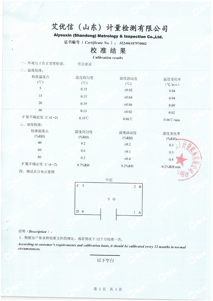溫濕度檢定箱(-10~65℃)校準證書(shū) 2024-6-25 本文被閱讀 6283 次