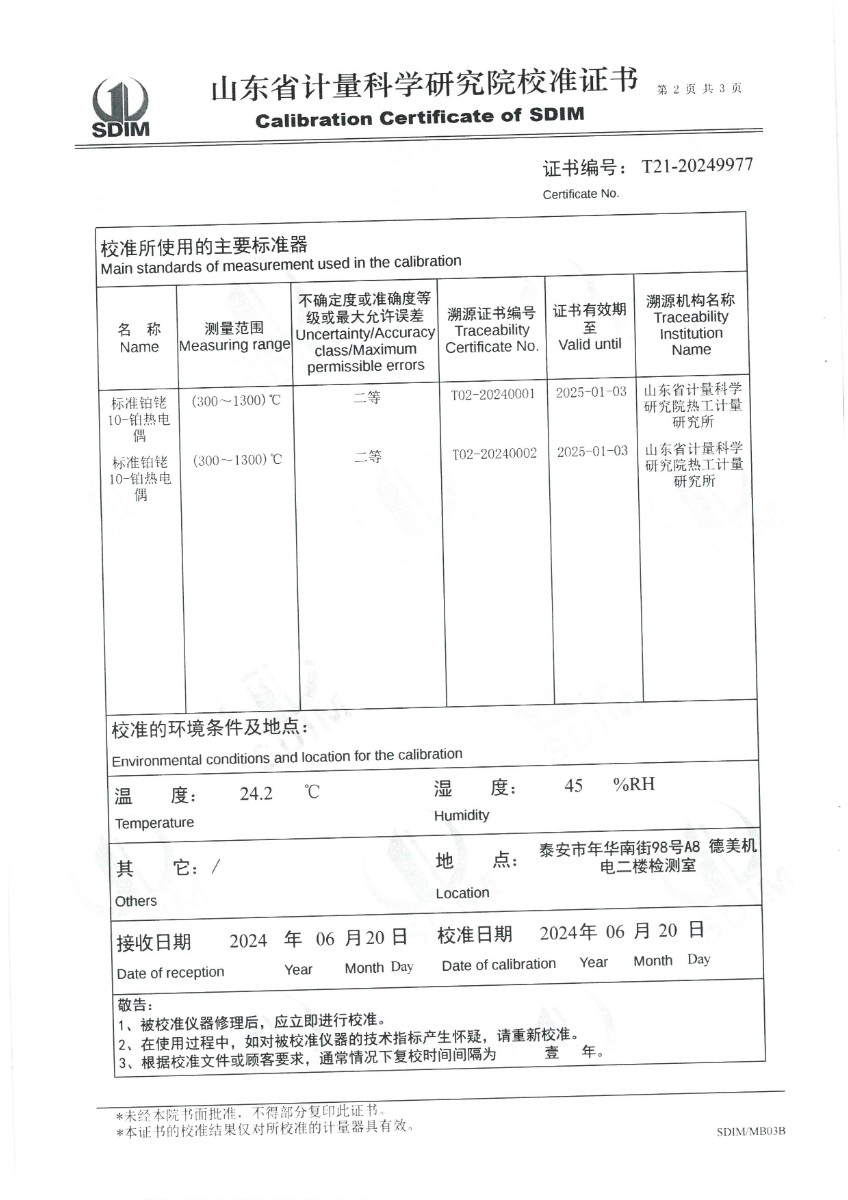 廉金屬熱電偶檢定爐(300~1200℃)校準證書(shū) 2024-6-26 本文被閱讀 6030 次